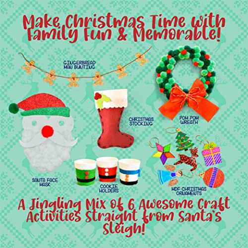 Christmas Cheer Craft Box contains a mix of 6 craft activities namely Santa Face Mask Christmas Stocking Gingerbread man bunting Christmas Tree Ornaments Cookie Holders Pom-Pom Wreath. The box comes with apt material required to complete each activity. Pom poms woolen threads beads paper cup MDF ornament cutouts jute gingerbread man cutouts ribbons pearl beads paints paintbrush glue are all included in the kit. A well-illustrated step by step guide is provided inside each box which makes the process extremely easy and fun. A well-illustrated step by step guide is provided inside each box which makes the process extremely easy and fun. Our kit offers a fun experience for all your friends and family to come together and create some wonderful craft objects and make some great memories. What better than adding a personal touch to your decor with your very own handmade crafts? Make your interiors colorful and fun with the final products from this box.