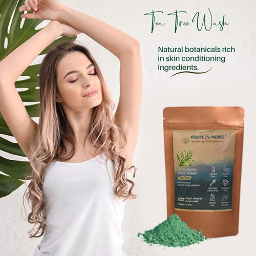 ROOTS AND HERBS Tea Tree Body Wash - Non foaming Shower Powder for Men & Women - Natural Antibacterial Cleanser for Acne treatment Body Odor