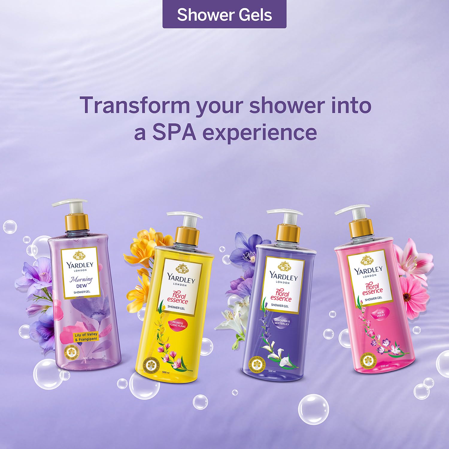 Yardley London| Shower Gel| Floral Essence| With Natural Floral Oils Of Gardenia & Waterlily| No Parabens| No Silicones | 500ml