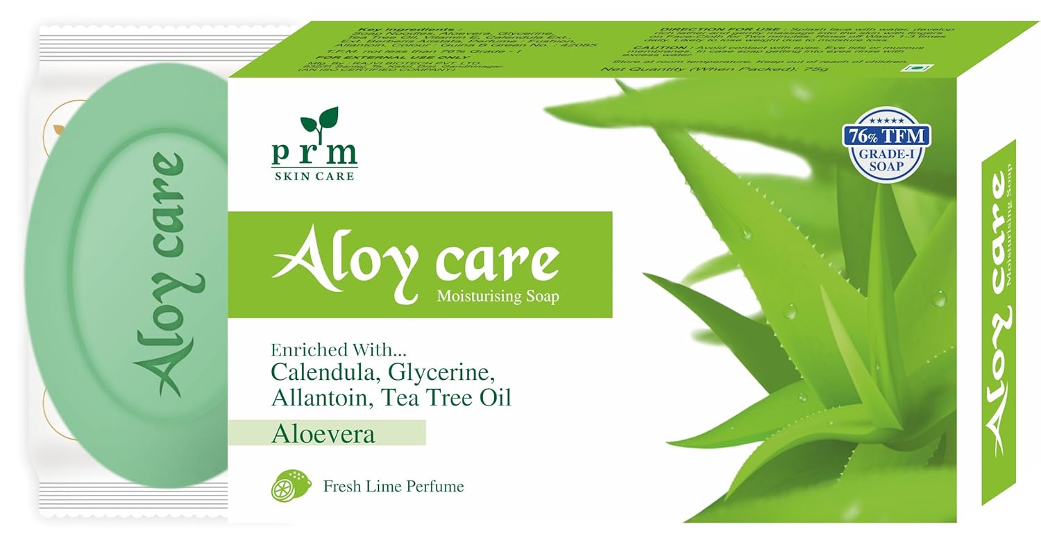 PRM Aloy Care Ayurvedic Moisturising Soap 75g (Pack of 2) Nourishing Body Soap With Aloe Vera, Vitamin E & Glycerine