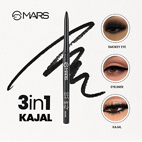 MARS Won'T Smudge Long Lasting Waterproof Super Black Matte Pencil Kajal (Jet Black, 0.35 G)