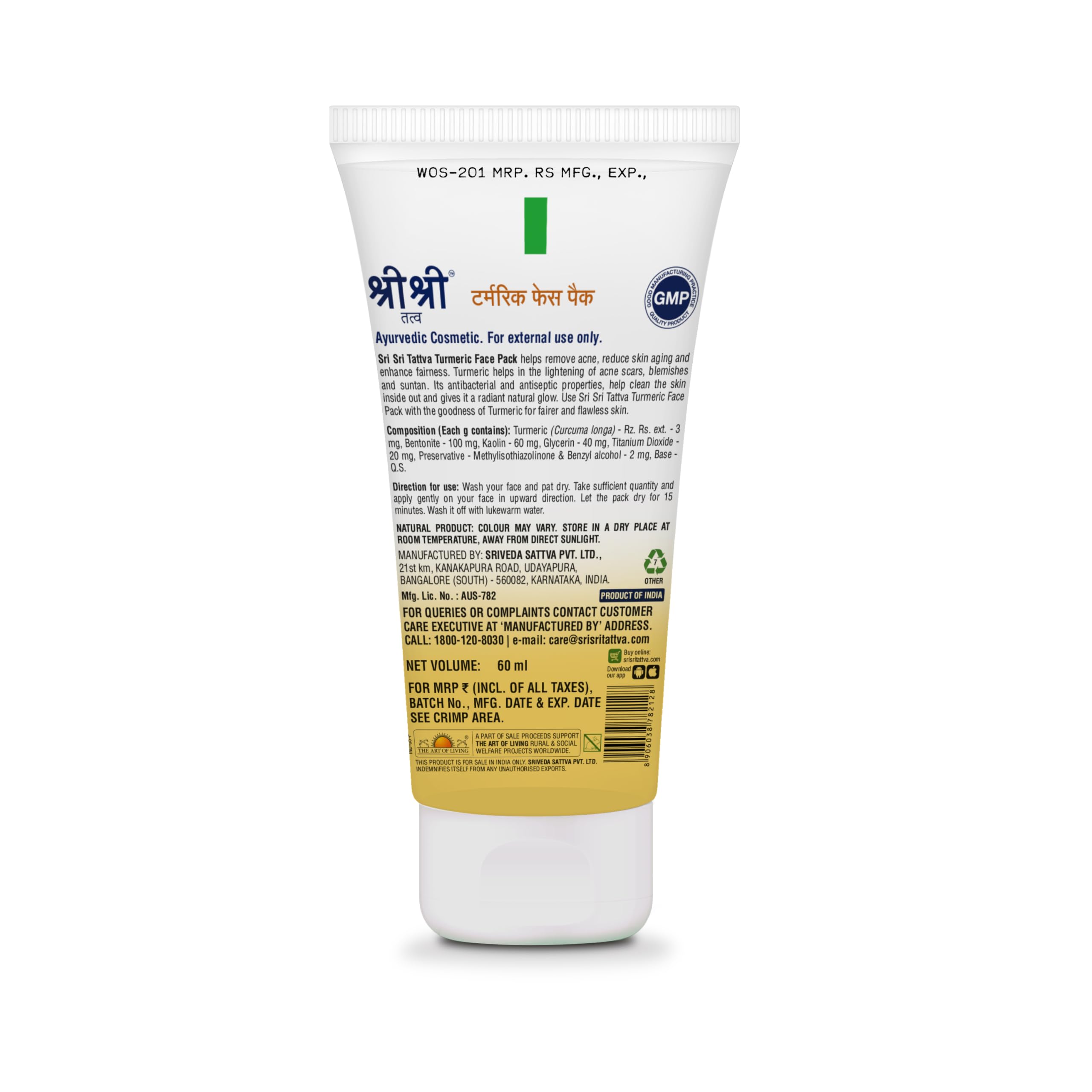 Sri Sri Tattva Turmeric Face Pack helps to remove acne reduce skin aging and enhance fairness. Turmeric helps in the lightening of acne scars blemishes and suntan. Its antibacterial and antiseptic properties help clean the skin inside out and gives it a radiant natural glow.