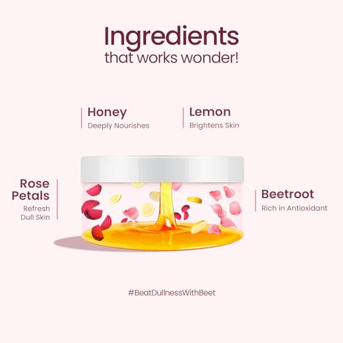 • BRING OUT ROSY GLOW: Enriched with the soothing freshness of Rose Beetroot & Mosambi our Rose & Beetroot Face Mask helps brighten skin & reveal a rosy glow. The nourishing properties reach the deeper layers of the skin to impart a promising long-lasting r