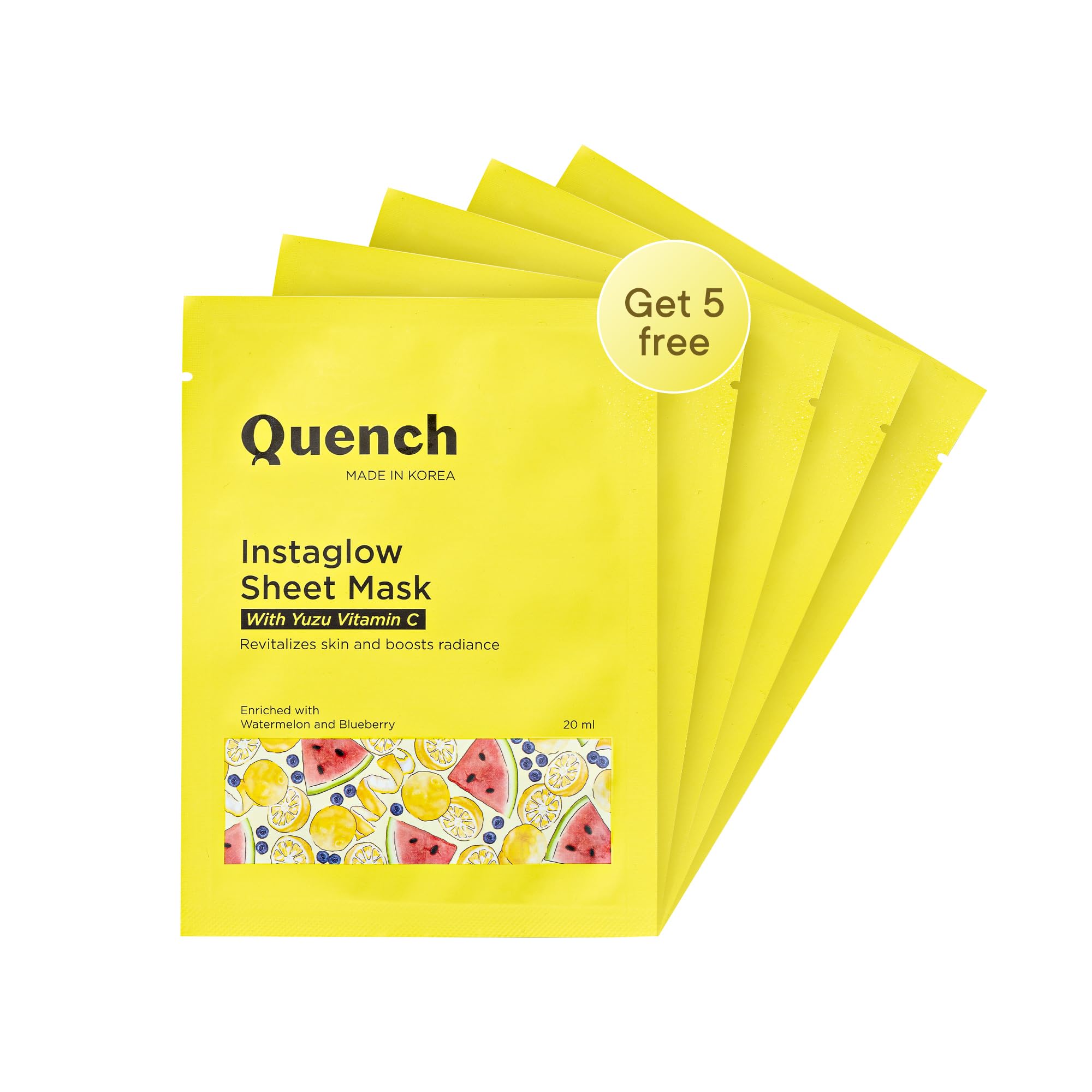 Boost your skin glow in less than 2o minutes with this hydrating and brightening sheet mask! It has the goodness of yuzu citrus fruit watermelon and blueberry extracts to nourish tackle dark spots dullness and make your skin dewy soft and plump.