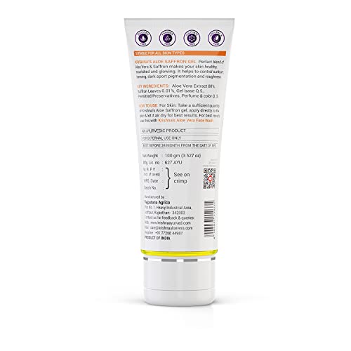 Krishna's Aloe Vera Gel Saffron for Acne Scars Glowing & Radiant Skin Treatment | Kesar aloe vera gel for face | Best aloveravgel for face | Pure Aloe vera gel for hair | aloevera gel gel 100 g