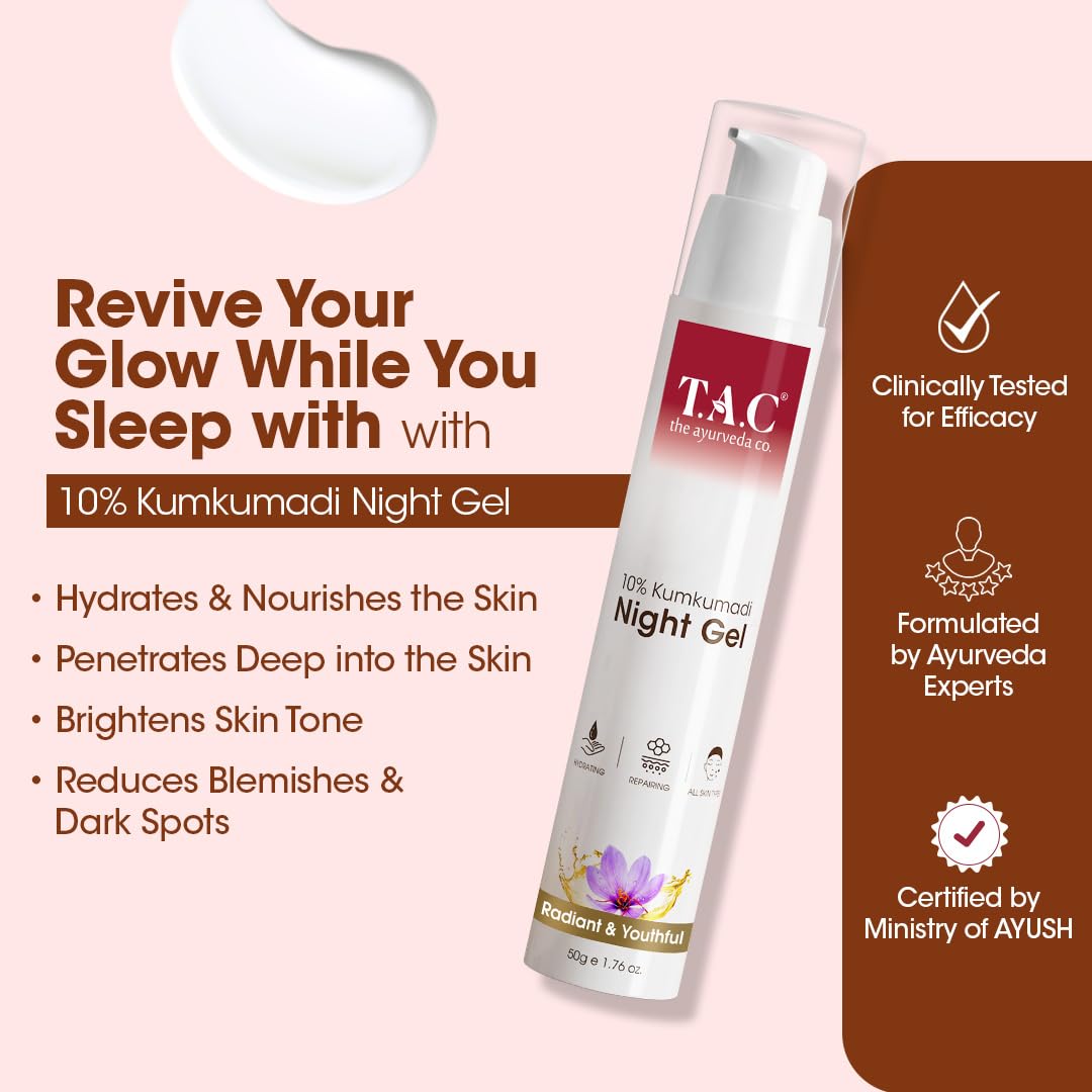 TAC - The Ayurveda Co. 10% Kumkumadi Night Gel | Beetroot Extract | Radiant & Youthful | For All Skin | 50g