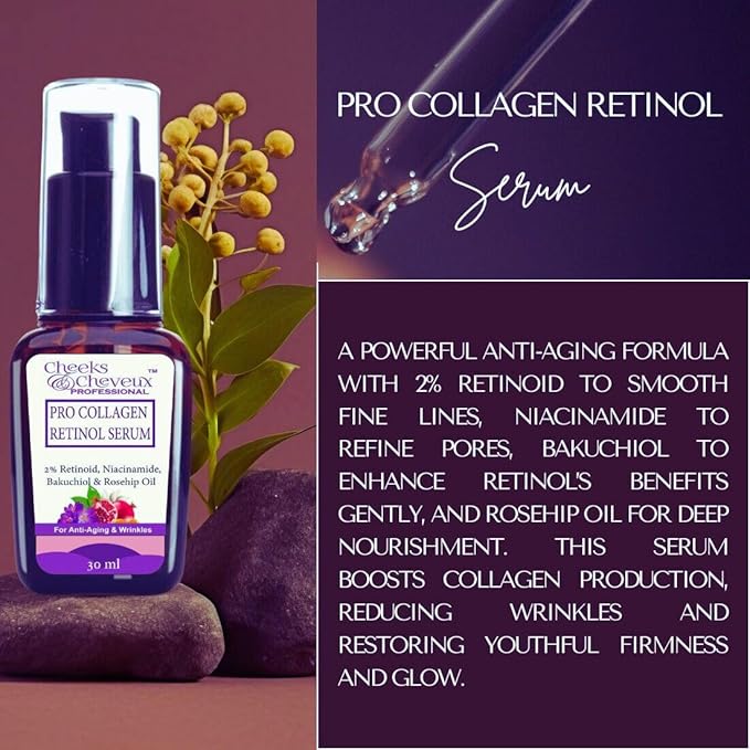 Cheeks & Cheveux Anti-Aging & Wrinkles Serum with 2% Retinoid, Niacinamide, Bakuchiol & Rosehip Oil | Fine Lines & Wrinkles Reduction Serum for Beginners | Water-Free Formula for Stability & Nourishment | Dark Spots Correcting Glow | Suitable for All Skin Types | For Women & Men | 30ml