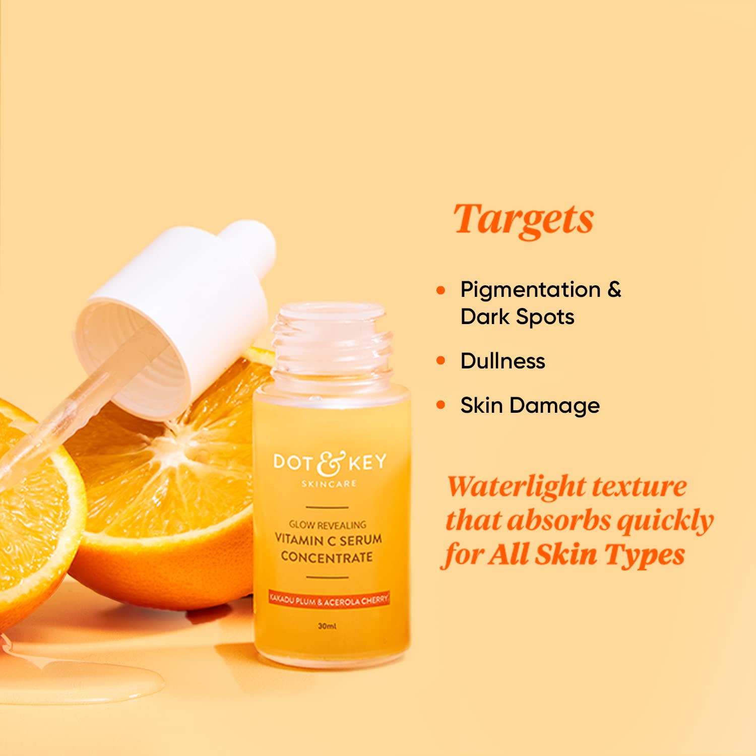 Dot & Key Glow Revealing Vitamin C Serum Concentrate with Kakadu Plum & Acerola Cherry | Face Serum for Dark Spots Pigmentation & Dull Skin | 30ml
