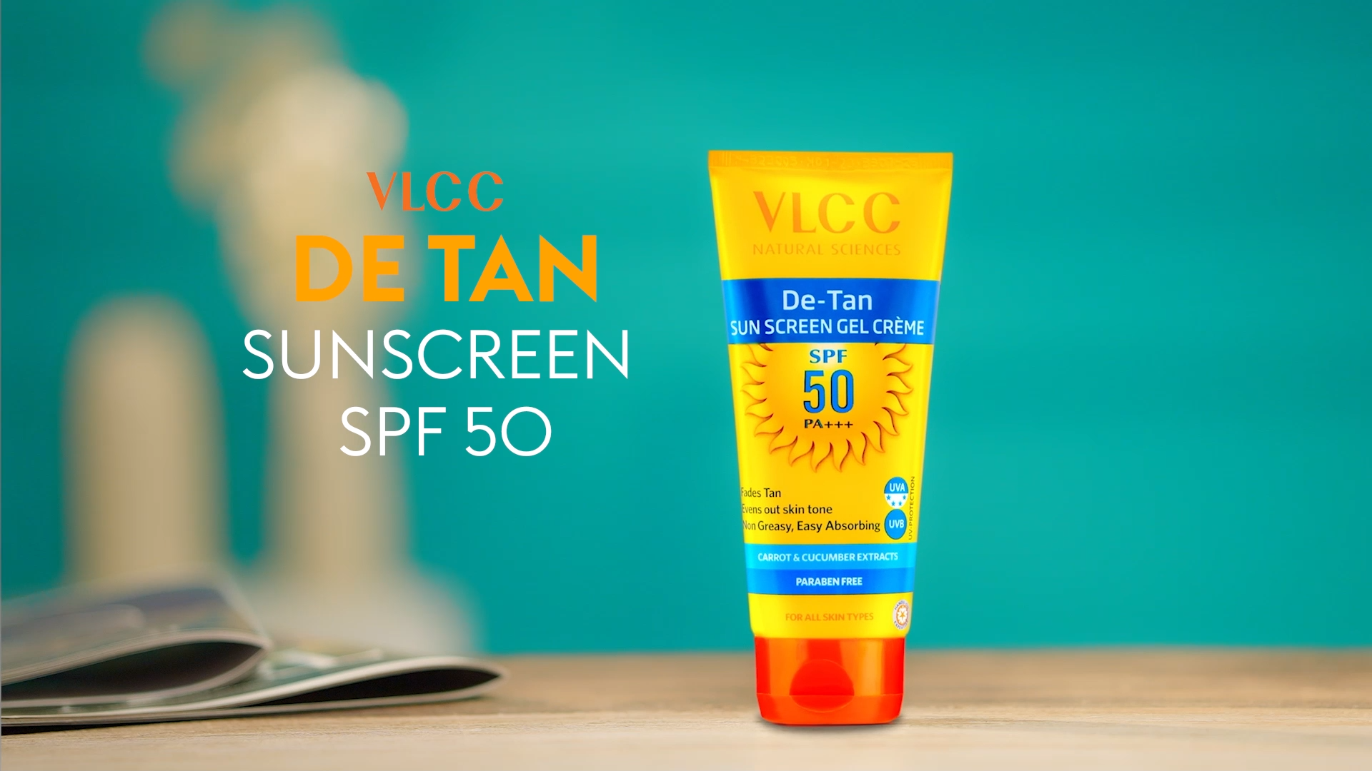 VLCC De-Tan SPF 50 PA+++ Sunscreen Gel Crème - 100g + 10g Extra | With Cucumber, Carrot, and Saxifraga Extracts | Enhances Glow, Protects from UVA, UVB Rays, and Help Reduce Dark Patches.