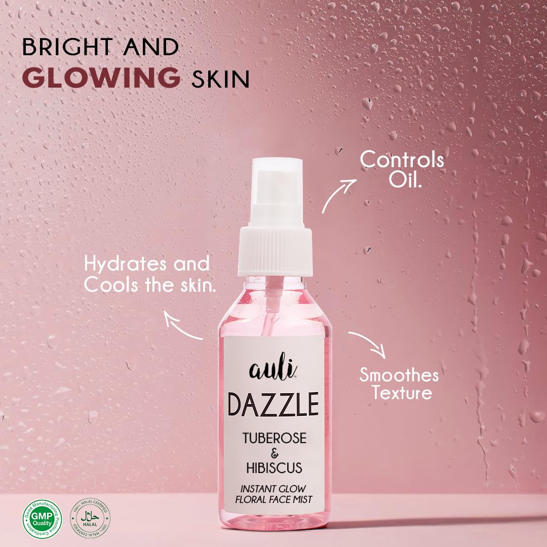 AULI LIFESTYLE Tuberose&Hibiscus Instant Floral Face Mist&Toner|Toner For Glowing Skin|Minimize PoresSkin TighteningControls Oils|Alcohol-Free|All Skin Types|Ayurvedic|Dazzle-120Ml