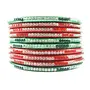 LAC BANGLES presents you a beautiful 10 piece bridal lac chura with six piece red Lac Bangles studded with white red stones & four piece green lac bangles studded with White green Stones and embellished with shining color on bangles which will enhance your bridal attire & make your every moment memorable.