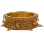 An eye catching wonderful latest stylish design bangles by the artisans of Jaipur Rajasthan India. This bangle set comprises 2 piece brass Yellow kada bangles studded with glossy zircons & pearl tassels / latkan. This unique Indian handicraft is an all occasion gift to add grace to any outfit. Pair it with any traditional ethnic designer casual or any party wear & crate your own style statement.