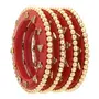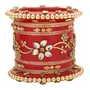 LAC BANGLES presents you an eye-catching wonderful latest design bangles by the artisans of Rajasthan India. This bangle set has 18 seep/plastic bangles which comprise 4 kundan Rajwadi bangadi 8 cream bangles with golden stones 4 red bangles & 2 kadas with beautiful flower design stud with kundan. This unique Indian handicraft is an all-occasion gift to add grace to any outfit. Pair it with any traditional ethnic designer casual or any party wear & create your own style statement.