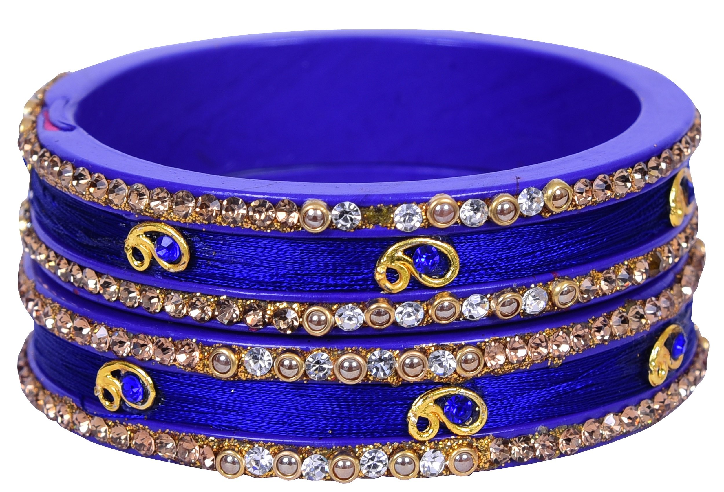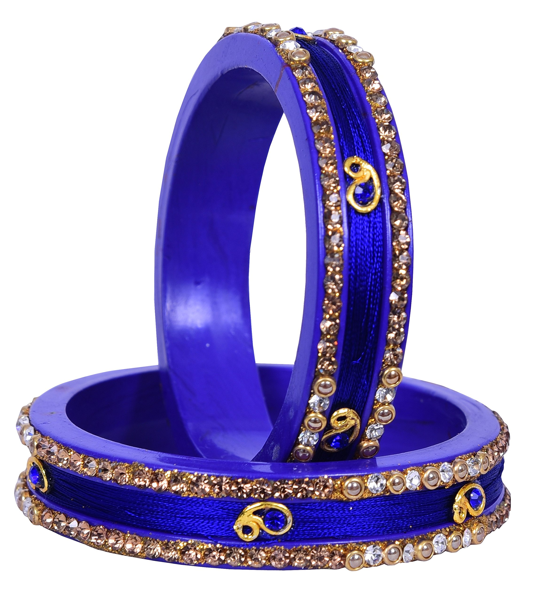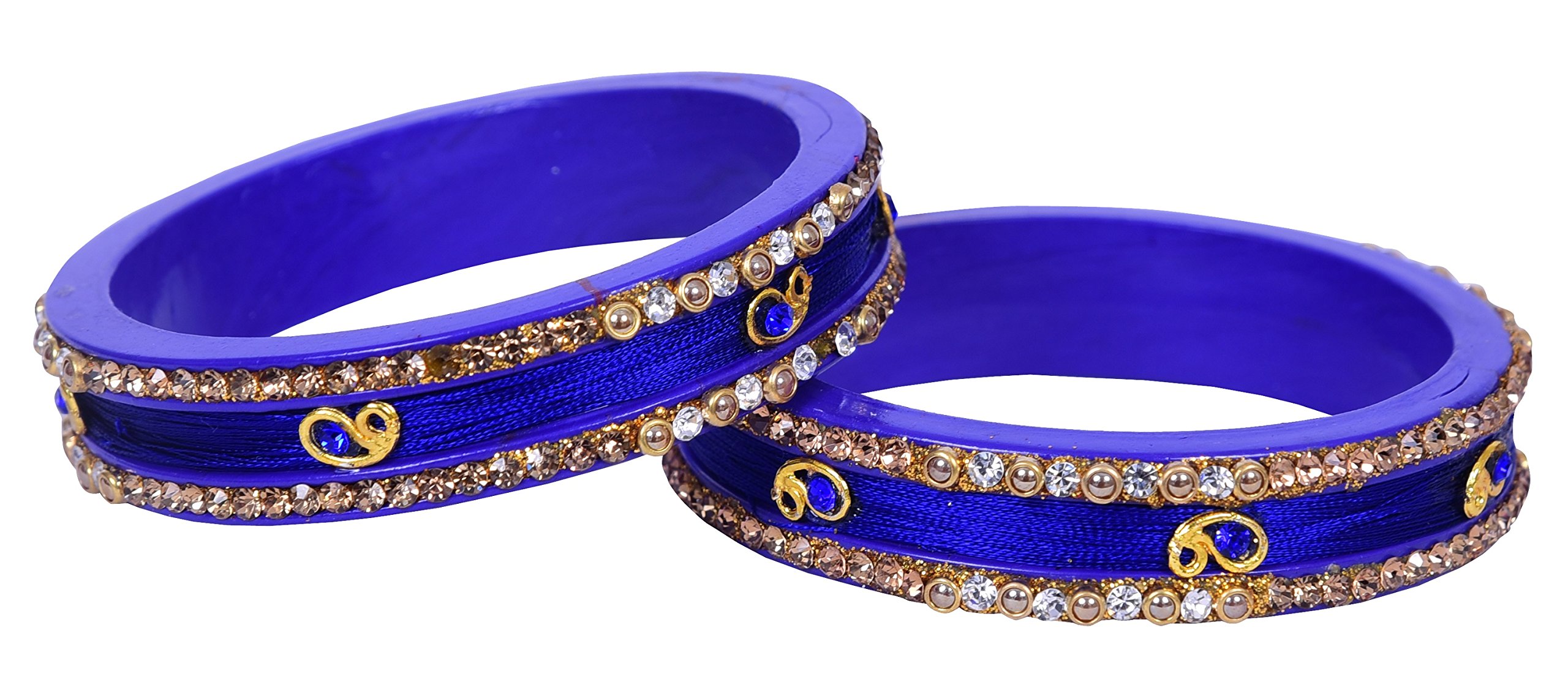 Upgrade your existing jewellery collection with this bangle set from the house of LAC BANGLES. We present you a rajasthani beautiful two piece silk thread Lac Kada bangles on Lac base studded with Gold & White color stones & embellished with pearl which will add a magical sparkle to your dazzling persona. Pair it with ethnic traditional or any party wear & create your own style statement.