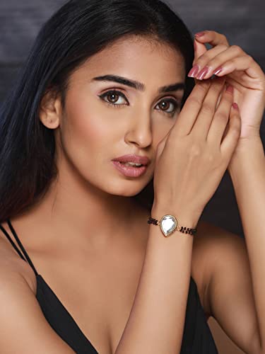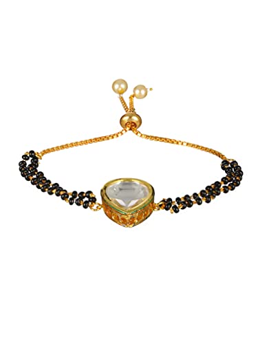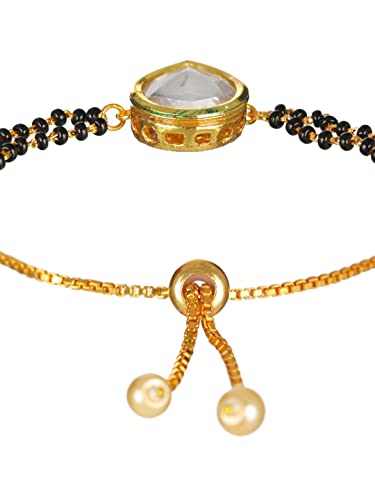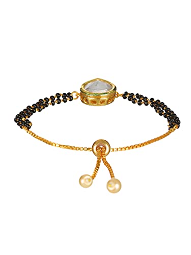 Priyaasi Kundan Pearl Black Bead Gold-ColorManra Bracelet