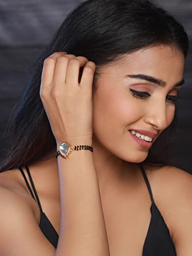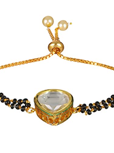 Material: This gold-plated mangalsutra bracelet can be secured by drawstring closure.