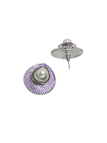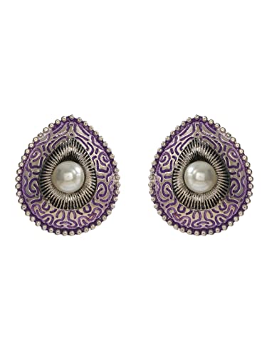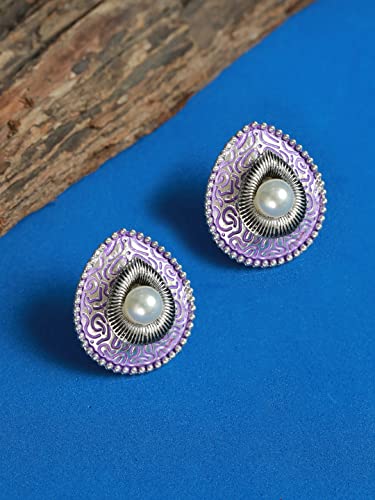 Priyaasi Purple Drop Shaped Pearl Stud Silver ColorEarrings