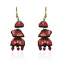 The products in display is made from terracotta material and is finished in an attractive color. Furthermore this product features a Jhumka shape and a design that renders it with the versatility to be worn as a festive occasion wear.
