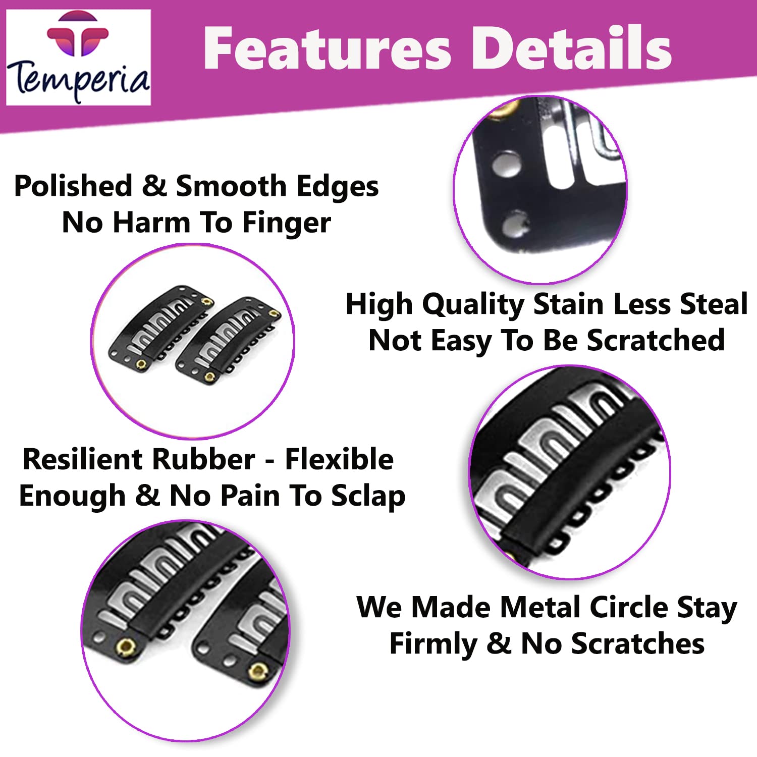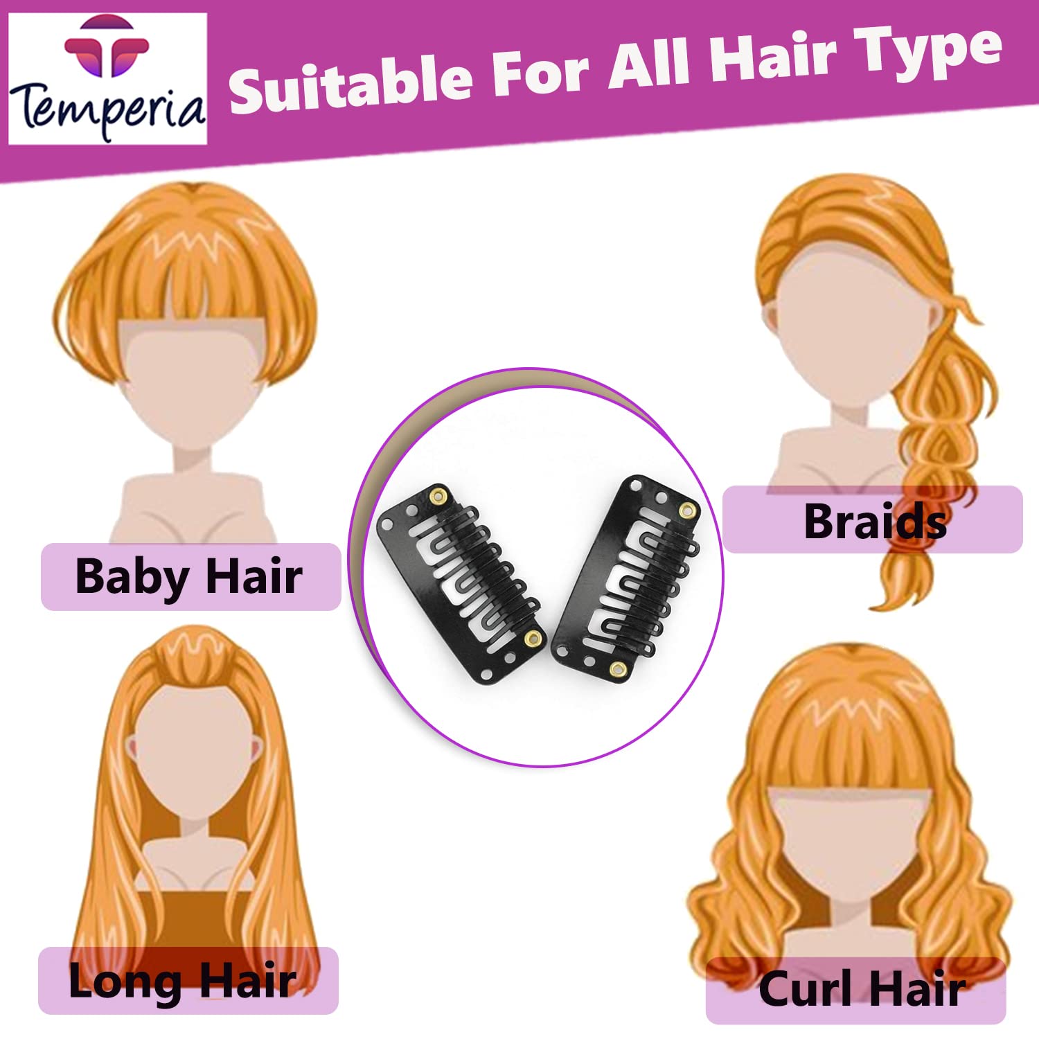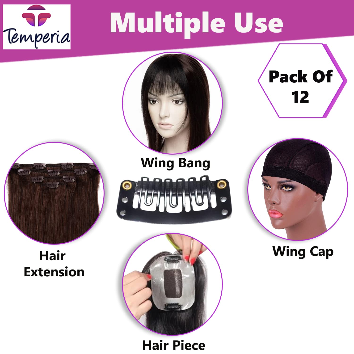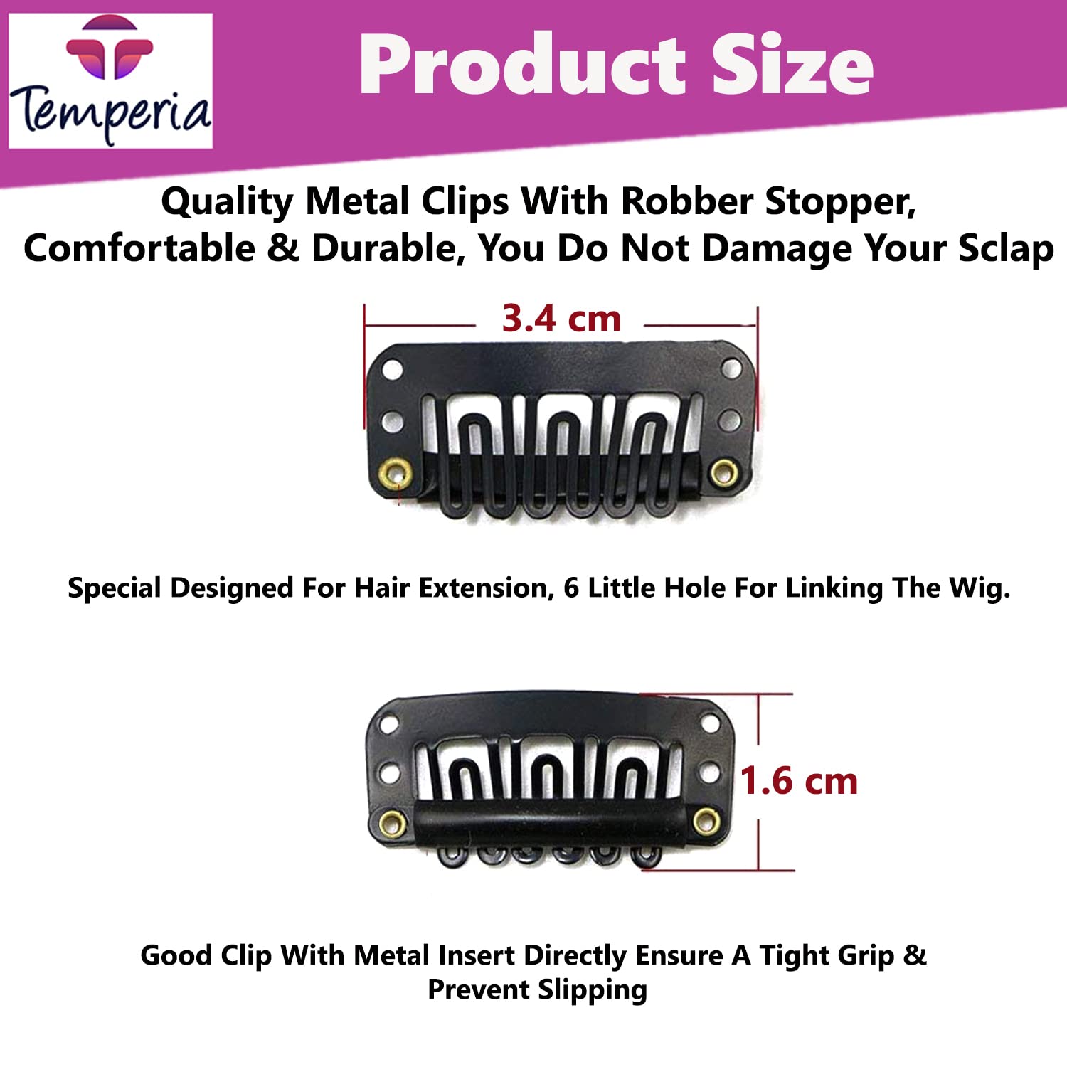 PACKAGE INCLUDES: 12 pcs Hair Extension Snap Clips Each Clip is 3.4 cm Long and 1.6cm Wide COMFORTABLE: The rubber design of the clips help prevent your scalp from getting hurt and prevents friction against your scalp EASY TO USE: Clips are Ergonomically Designed which makes them Easy to handle and Works greatly to secure your Wig/Hair Extensions EASY SEWING: Specially designed for hair extension and wigs with little holes for linking or sewing the wig DURABLE: The clips are made from premium metal which makes them sturdy and Durable