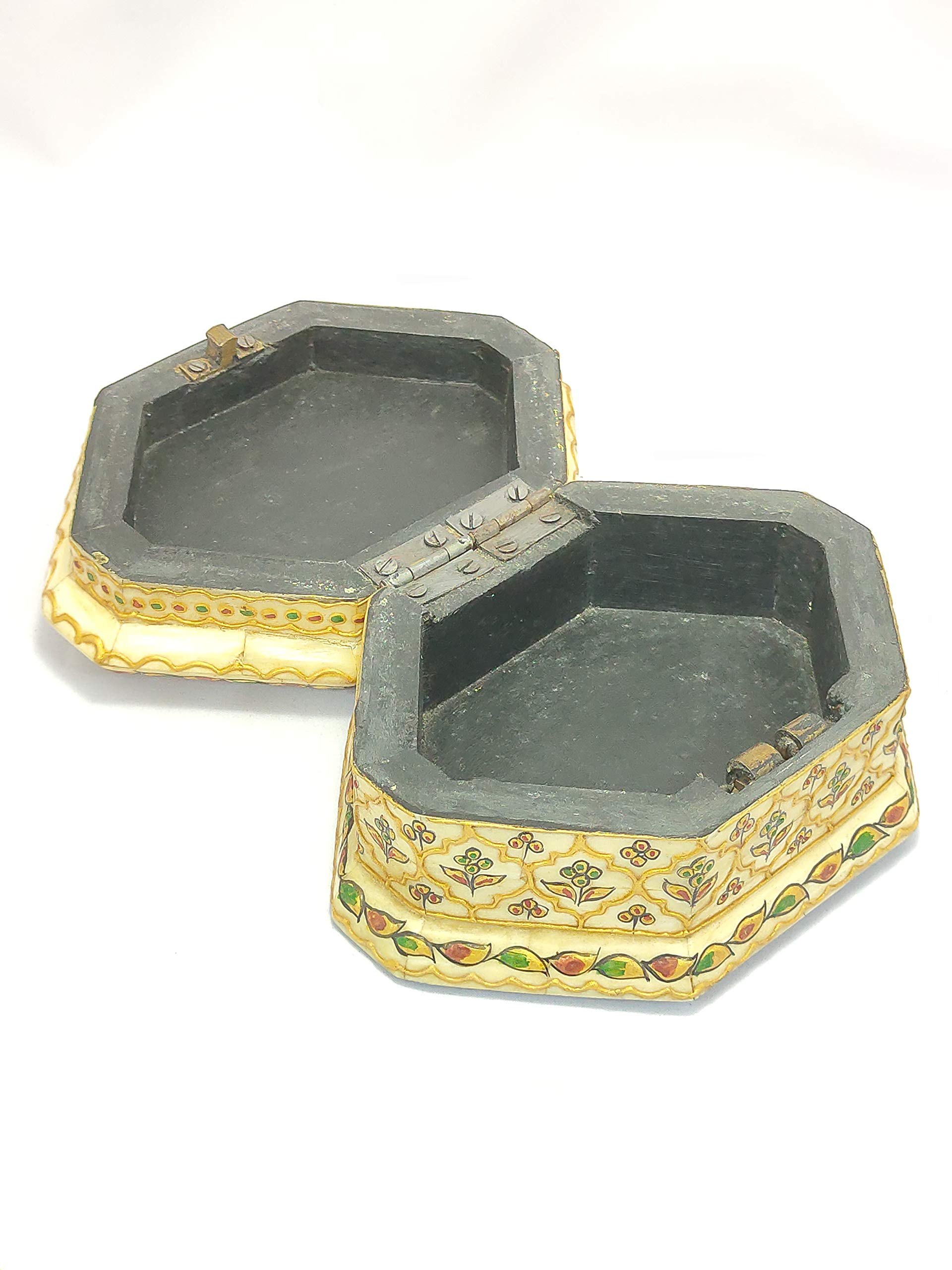 Handmade Trinket Box Hand Painted Natural Camel Bone Chips on Wood Trinket Box