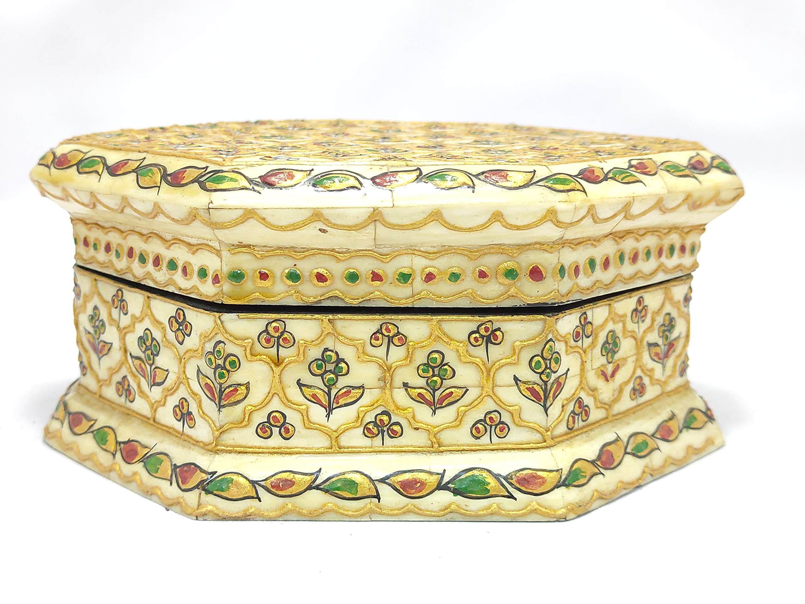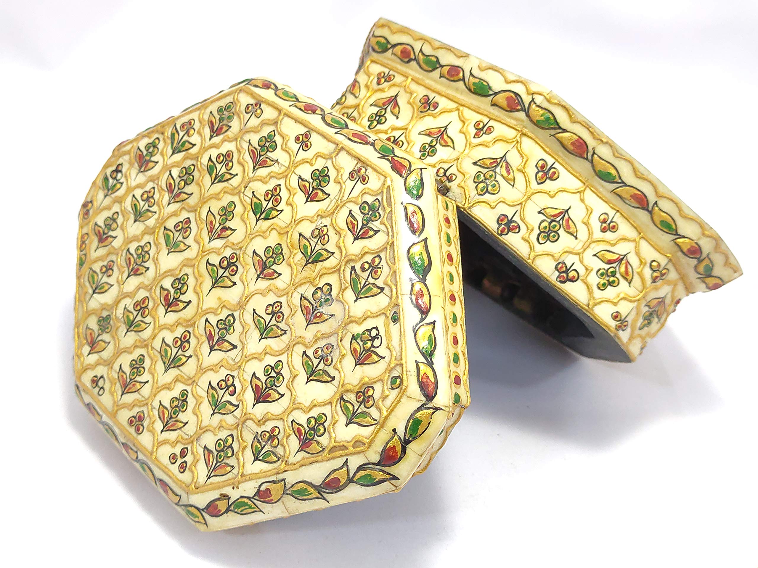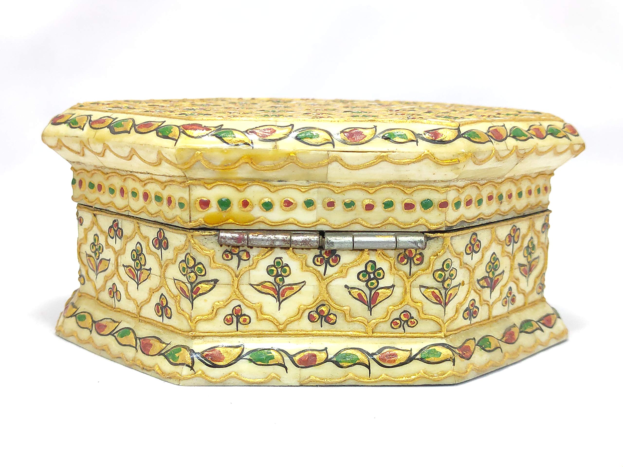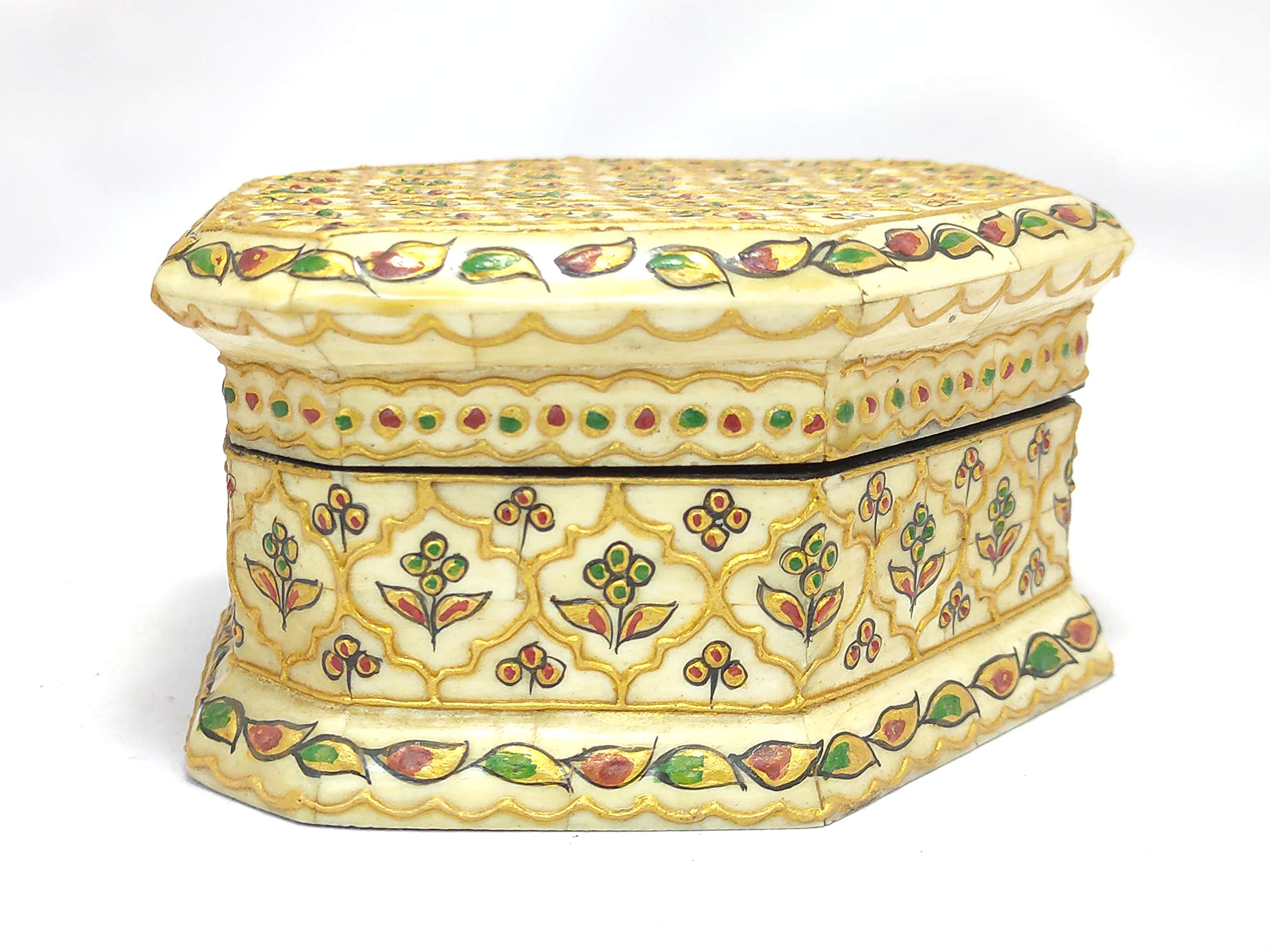 CAMEL BONE ARTICLES Handmade Trinket Box Hand Painted Natural Camel Bone Chips on Wood Trinket Box