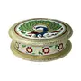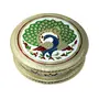 CHURU SILVERWARE Wood Rajasthani Handicraft Peacock Design Round Dry fruit Serving Box (Multicolour 7.8 X 7.8 X 2.3 Inch)