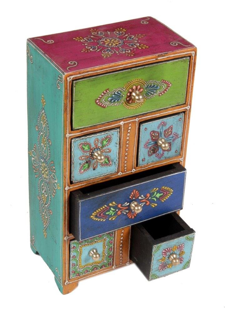 HANDPAINTED WOODEN DRAWER CHEST Traditional Wooden Antique 2+4 Drawer Hand Painted Chest Size 6x4x11Inch / 15x10x27.5Cm