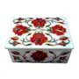 MARBLE INLAY ART AGRA - PACCHIKARI Handcrafted Rectangular White Marble Box is made from Single piece of marble and produce by the descendants family who build the Taj Mahal. its a Special Art of Agra India. The Rectangular White Marble Necklace Holder is made in Agra India & fully handmade. Design - Taj Mahal Tree of Life Design. We will send you a Paper with name of the stone meaning of the Semi Precious Stones. Stones are Used in the Box are : Green : Malachite Orange : Carnelian White : Mother of Pearl. Light Blue - Turquoise. Brown - Jasper. Dark Blue - Lapis lazuli. Shiny - Pauch Shell. This Rectangular White Marble Necklace Holder can be used for jewelry visiting card & also can be used for decoration on coffee table & dressing table. To maintain this art piece simply clean it with soap water and dry cotton cloth. It is an art piece which will be a beauty & the conversation piece at home