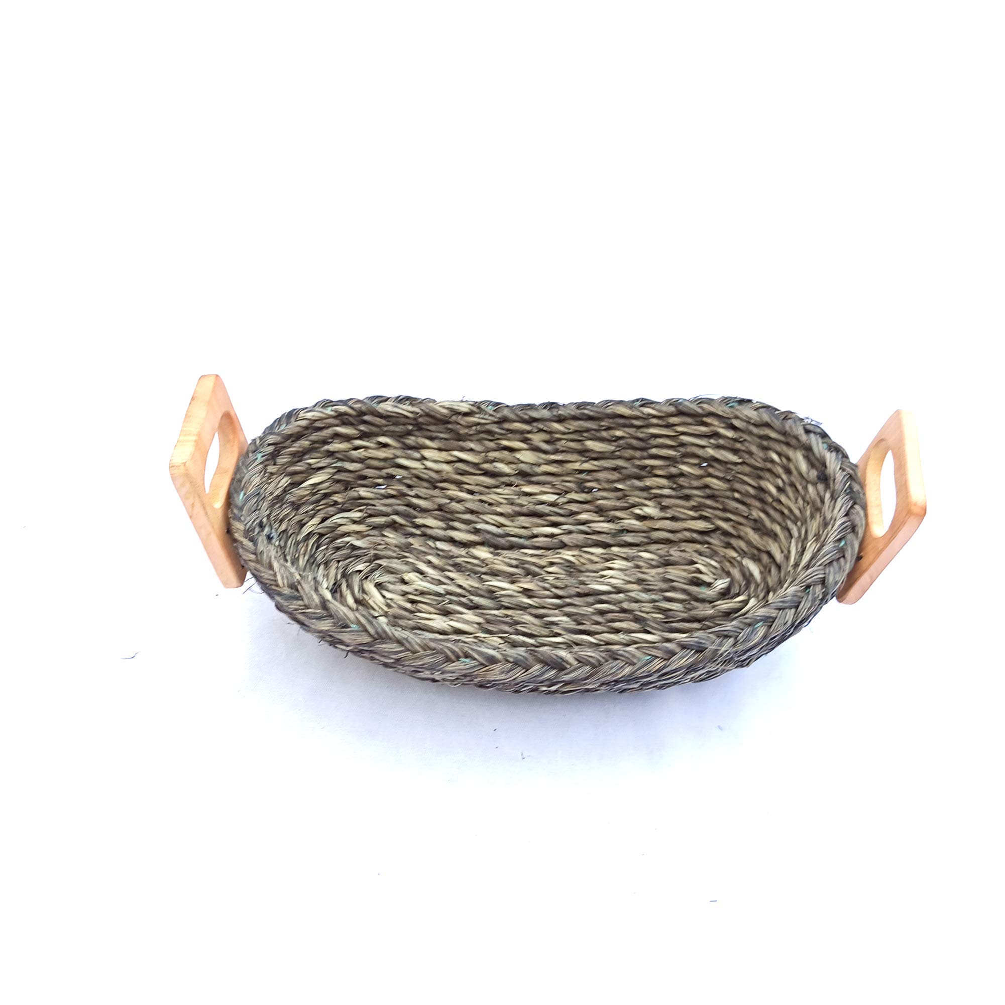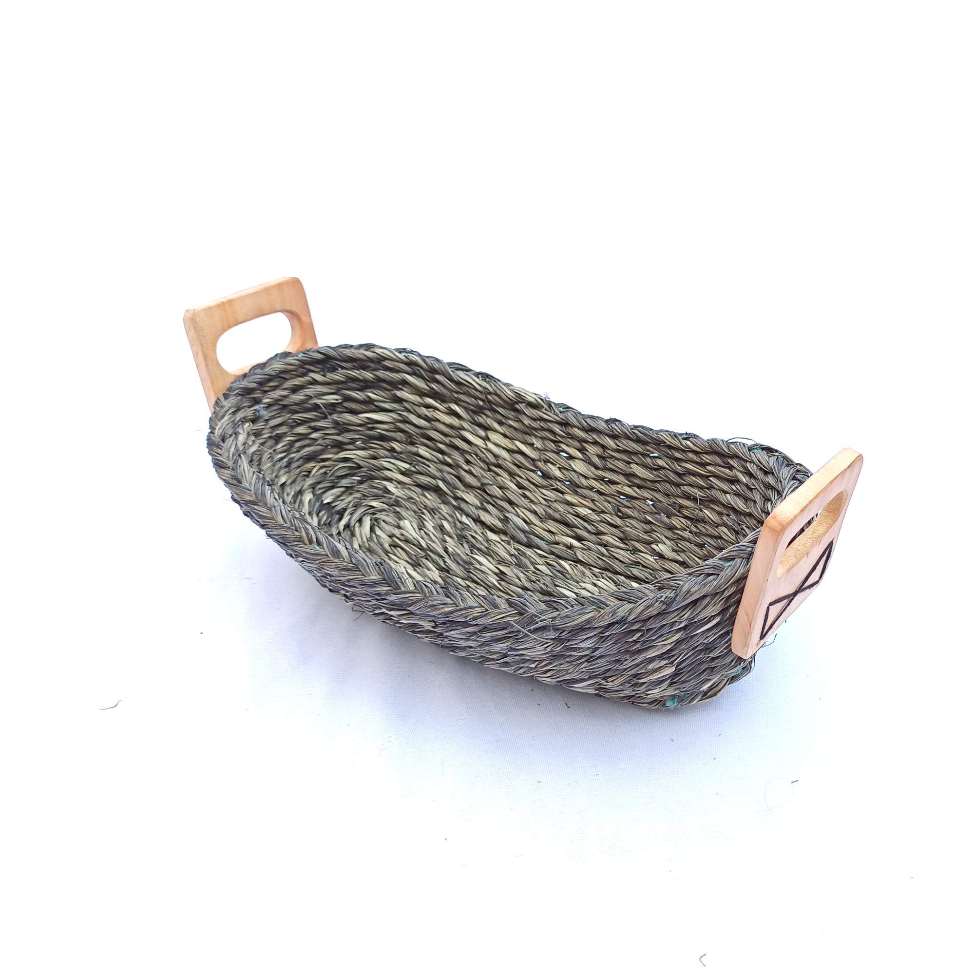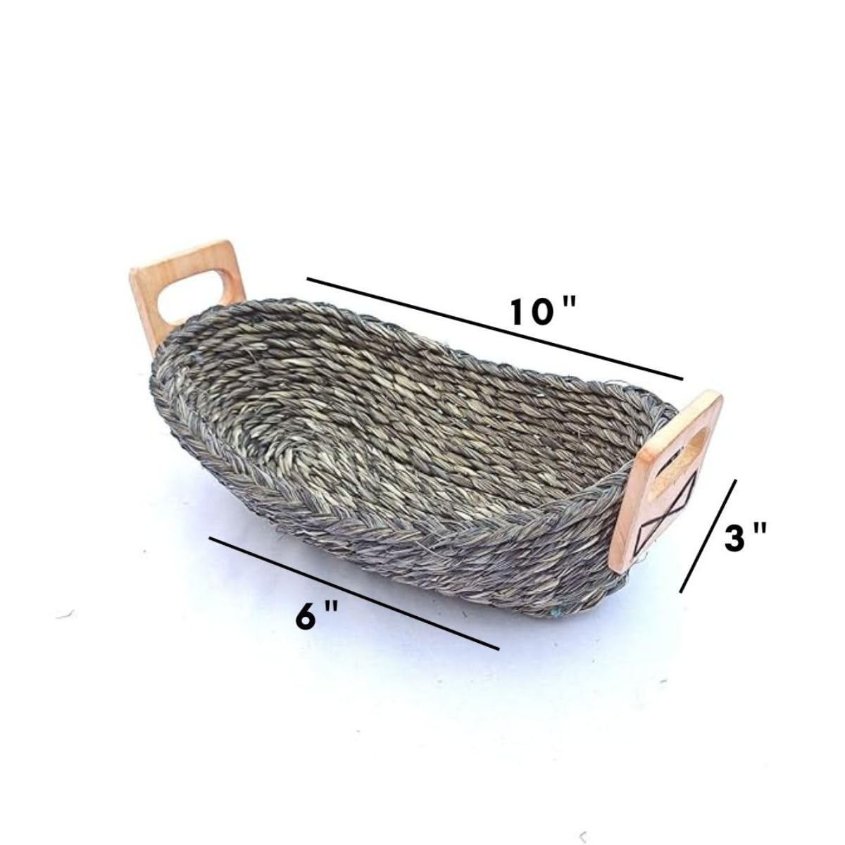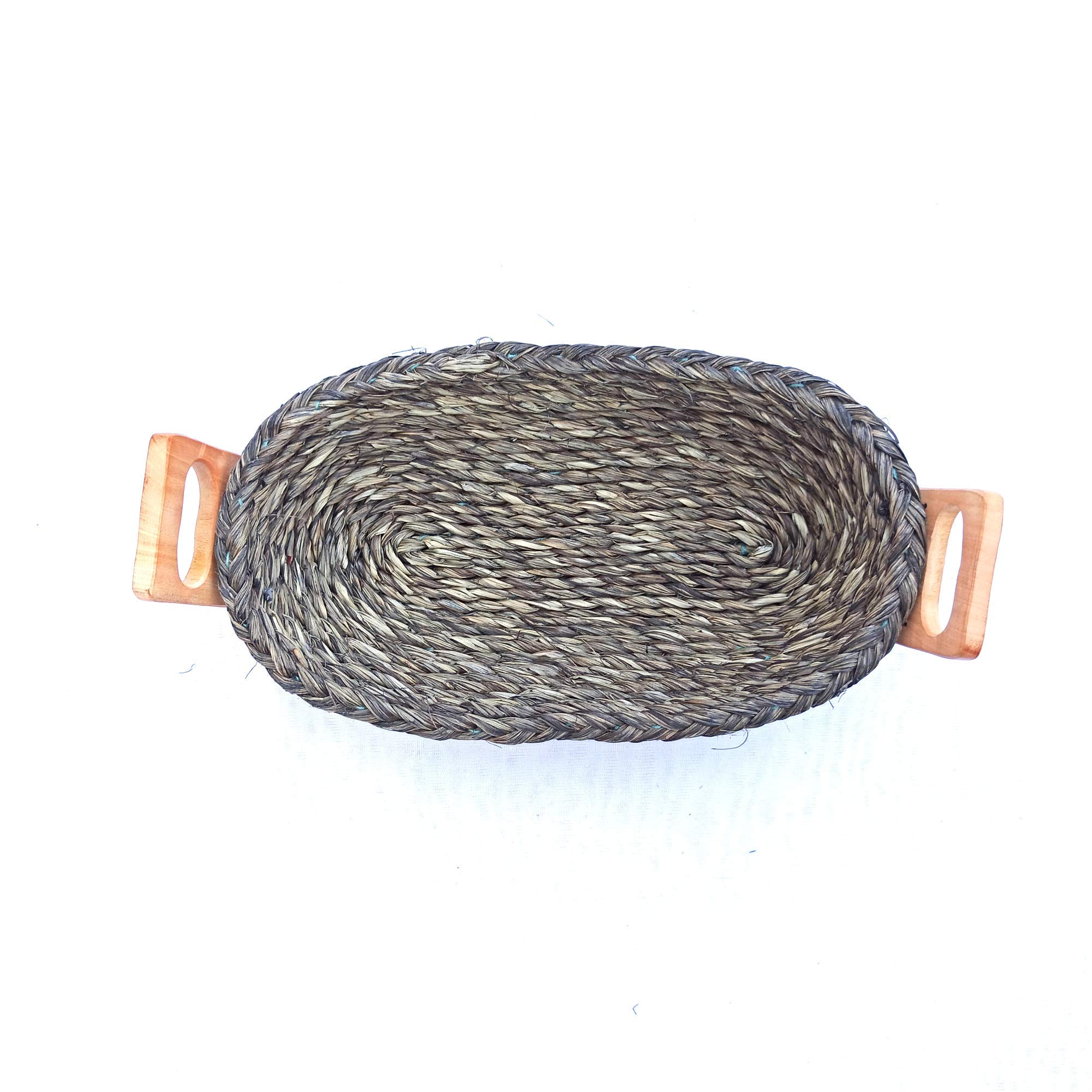 SIKKI CRAFT Handmade Sabai Bread Basket with Handles | Natural Grass/Storage Bins | for Serving Roti Kitchen or Restaurant | Can be Used for Fruits Snacks Cosmetics (25x16x8 cm Small Black)