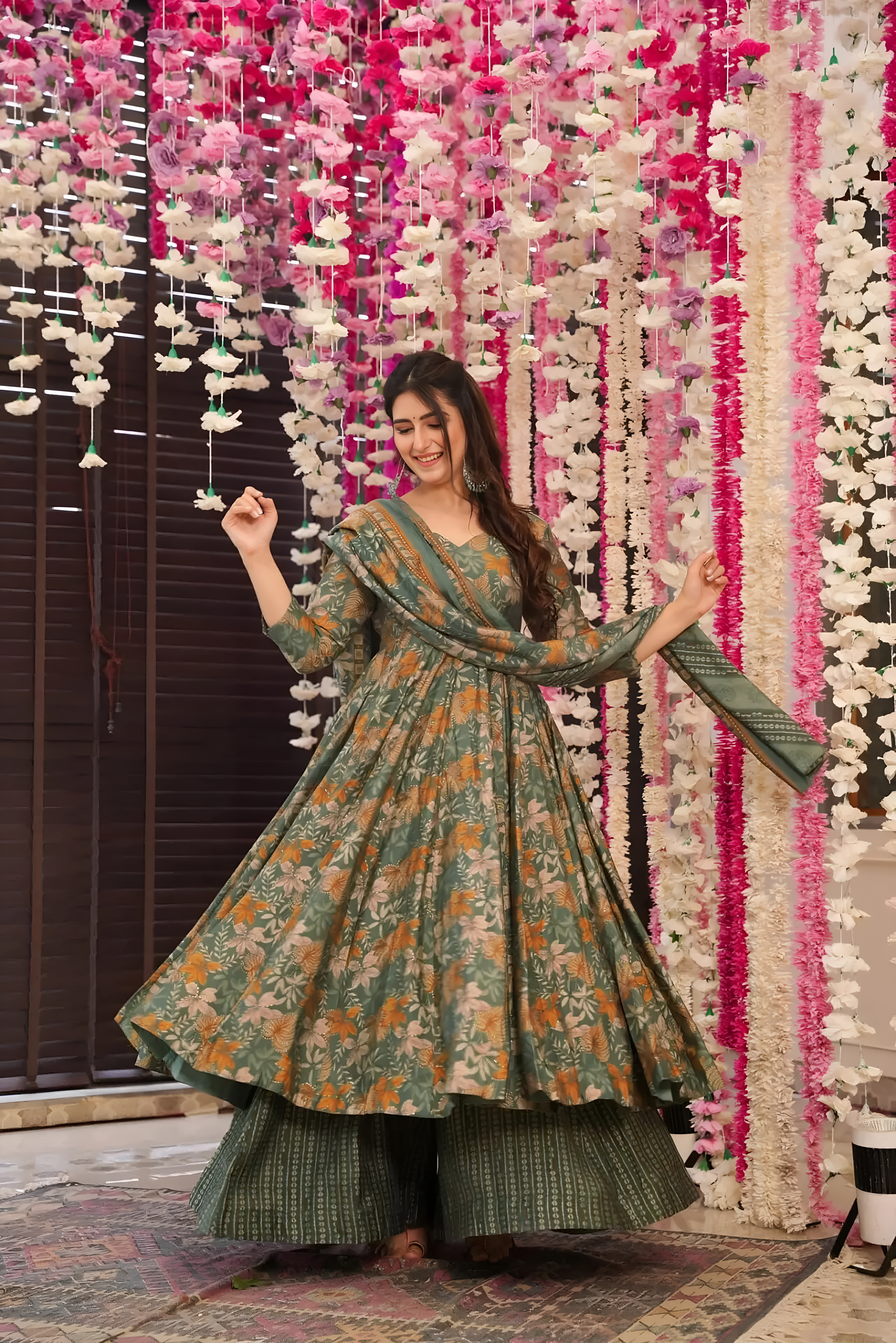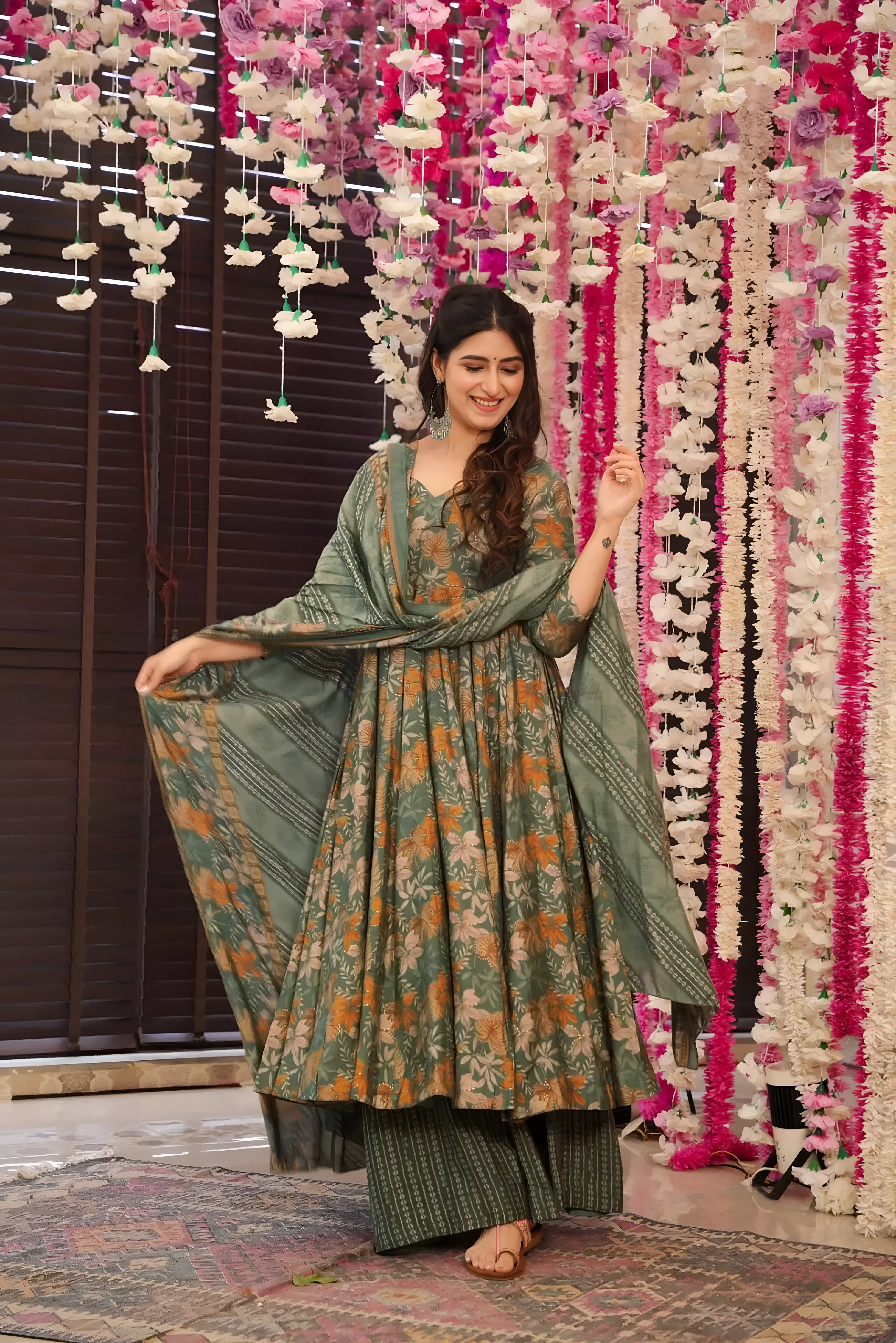 Step into effortless elegance with this beautifully crafted readymade Anarkali bottom set with dupatta. Featuring a flowing silhouette and refined detailing, this outfit blends classic charm with modern comfort, making it perfect for festive celebrations and ethnic gatherings.