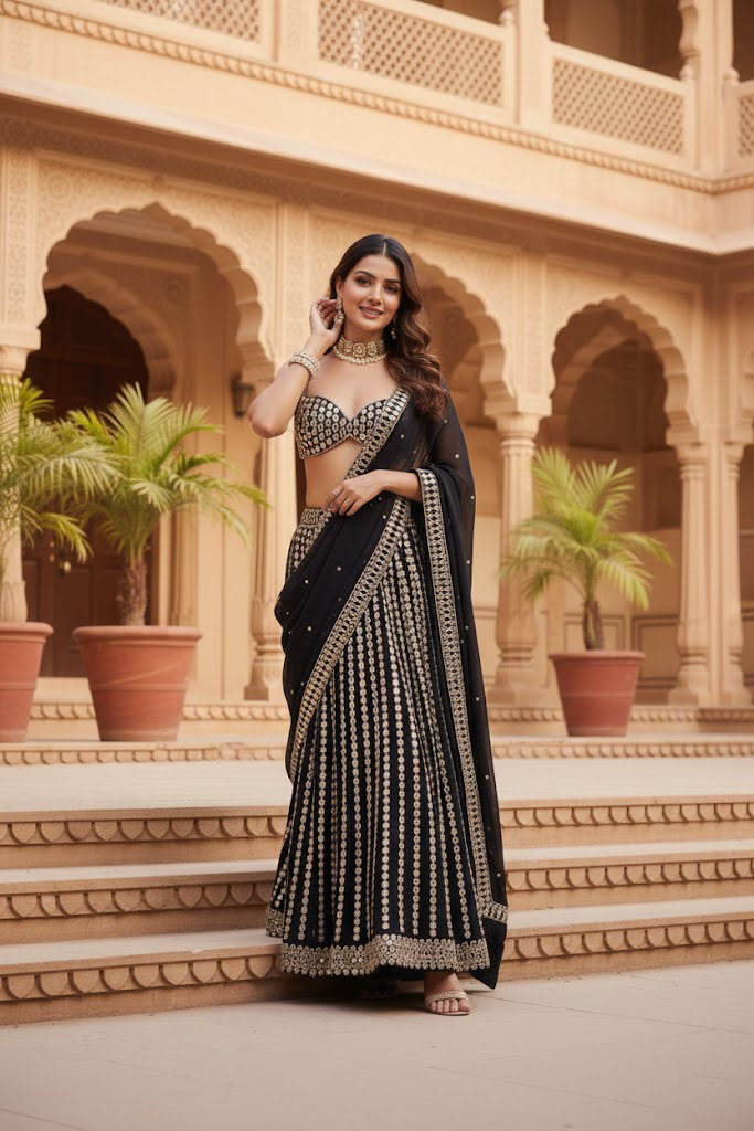 LEHENGA(BOTTOM): -FABRIC: - ORGANZA SILK FABRICINNER: - MICRO FABRICWORK: - PAPER MIRROR WITH ZARI EMBROIDERY WORKSTITCH: - SEMI STITCHED WITH CANCAN AND CANVASSIZE: - 42 HEIGHT AND 42 WAISTFLAIR: - 3.50 METERS CHOLI(TOP): -FABRIC: - ORGANZA SILK FABRICWORK SIZE: - 1.10 METER EMBROIDERY WORK FABRICWORK: - PAPER MIRROR WITH ZARI EMBROIDERY WORKSTITCH: - UN STITCHED FABRICDUPATTA: -FABRIC: - ORGANZA SILK FABRICWORK: - PAPER MIRROR WITH ZARI EMBROIDERY LACE BORDER WORKSIZE: - 2.25 METER DUPATTASTITCH: - FULL STITCHEDADDITIONALWASH CARE: - DRY CLEAN ONLYCOLOR: - PRODUCT COLOR MAY SLIGHTLY VARY DUE TO PHOTOGRAPHIC LIGHTNING SOURCES OR YOUR DEVICE DISPLAY SETTINGSTHESE ARE MADE TO ORDER DESIGNER STYLES, HENCE EXPECT A SLIGHT VARIATION FROM THE IMAGE DISPLAYEDIN THE BOX 1 PIECE LEHENGA 1 PIECE DUPATTA 1 PIECE BLOUSE FABRIC (1 SET OF HAND MADE TASSELS)ALTERNATIVEHANDMADE TASSELS MAY DIFFER FROM THE PHOTOS AND VIDEOS. TASSELS WILL BE AVAILABLE AS LONG AS THE CURRENT STOCK LASTS. ALTERNATIVELY, NEW STOCK MAY TAKE SOME TIME TO ARRIVE. WE ARE NOT STRICTLY BOUND TO PROVIDE TASSELS.