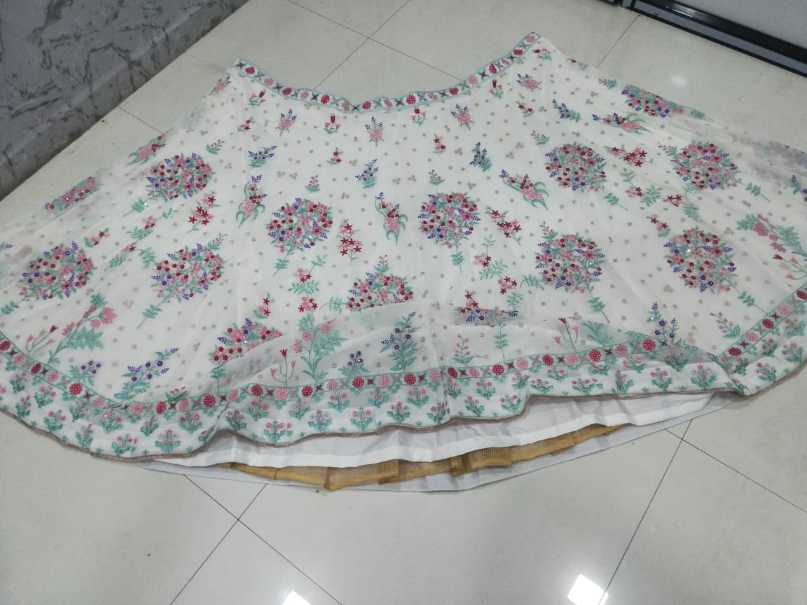 Cream Thread Embroidered Georgette Lehenga Set