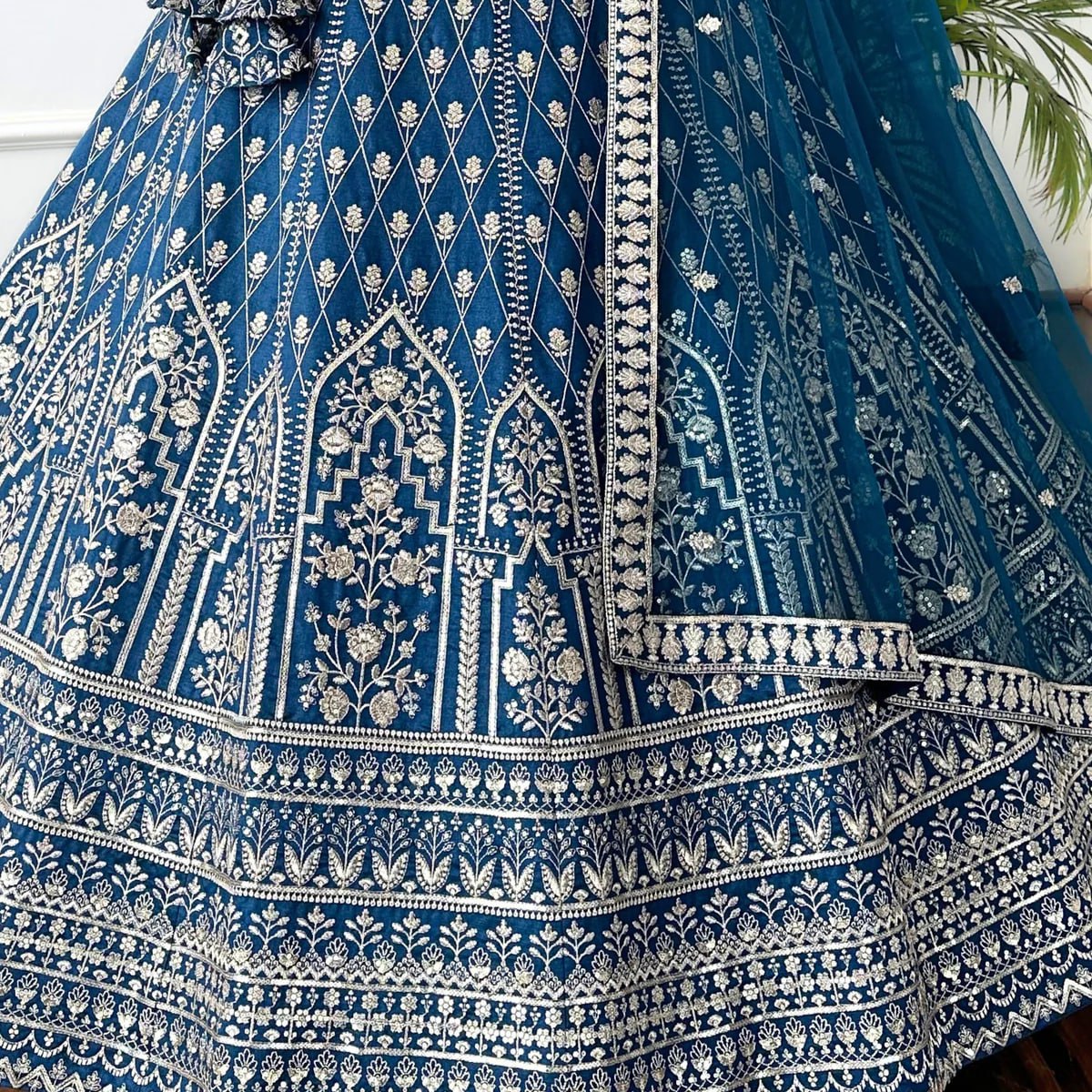 LEHENGA(BOTTOM), FABRIC:- FAUX GEORGETTE, INNER:- CREPE, WORK:- 3MM SEQUINS WITH JARI, THREAD EMBROIDERY WORK, STITCH:- SEMI STITCHED(WITH KENKEN AND KENVAS), SIZE:- 42HEIGHT AND 42 TO 44 WAIST, FLAIR:- 3.50 METER FLAIR, CHOLI(TOP), FABRIC:- FAUX GEORGETTE, INNER:- CREPE, BLOUSE SIZE:- 1 METER EMBROIDERED FABRIC, WORK:- 3MM SEQUINS WITH JARI, THREAD EMBROIDERY WORK, STITCH:- UN STITCHED EMBROIDERED FABRIC WITH INNER FABRICS, DUPATTA, FABRIC:- FAUX GEORGETTE WITH LACE BORDER WORK, WORK:- 3MM WITH JARI, THREAD EMBROIDERY WORK, SIZE:- 2.25 METER DUPATTA, STITCH:- FULL STITCHED, ADDITIONAL, WASH CARE: - DRY CLEAN ONLY, COLOR: - PRODUCT COLOR MAY SLIGHTLY VARY DUE TO PHOTOGRAPHIC LIGHTNING SOURCES OR YOUR DEVICE DISPLAY SETTINGS, THESE ARE MADE TO ORDER DESIGNER STYLES, HENCE EXPECT A SLIGHT VARIATION FROM THE IMAGE DISPLAYED.