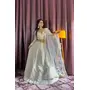Fabric : Georgette lehenga with sequins thread work, Flair 3.5 meter, Can can attach, Georgette blouse with sequins thread work all over front back ( Unstitch ), Net Duppata with sequins work foil paper border work.
