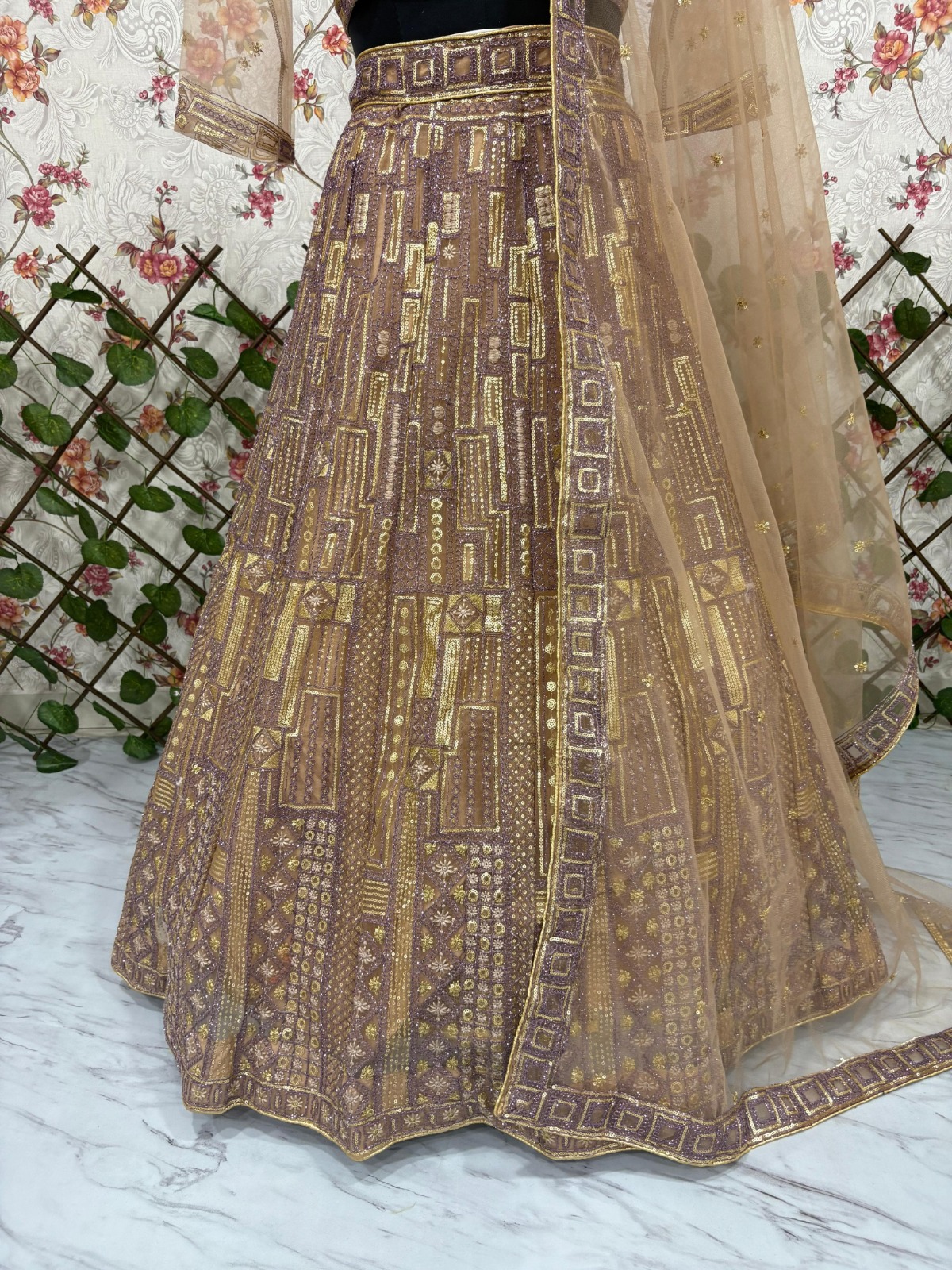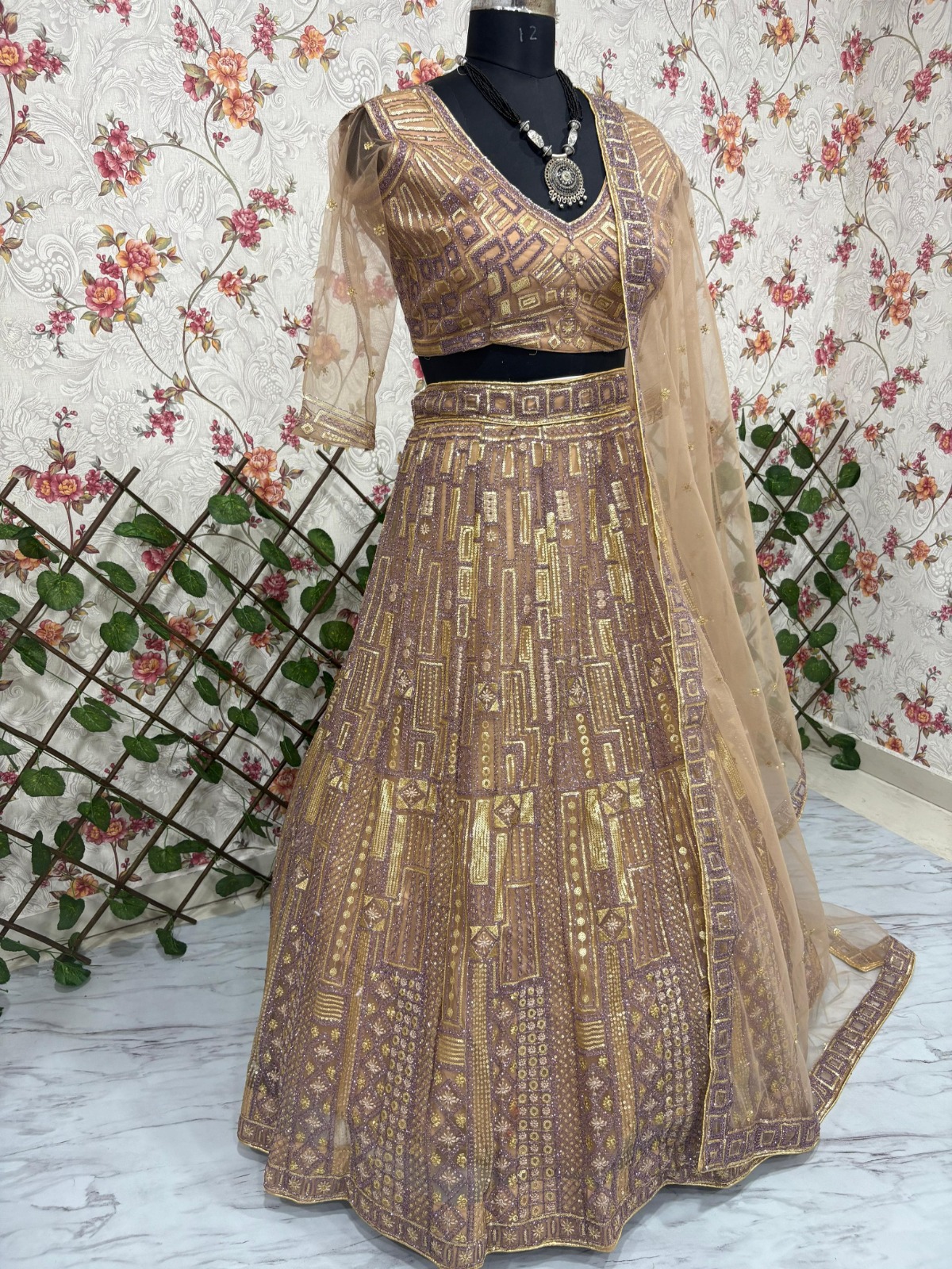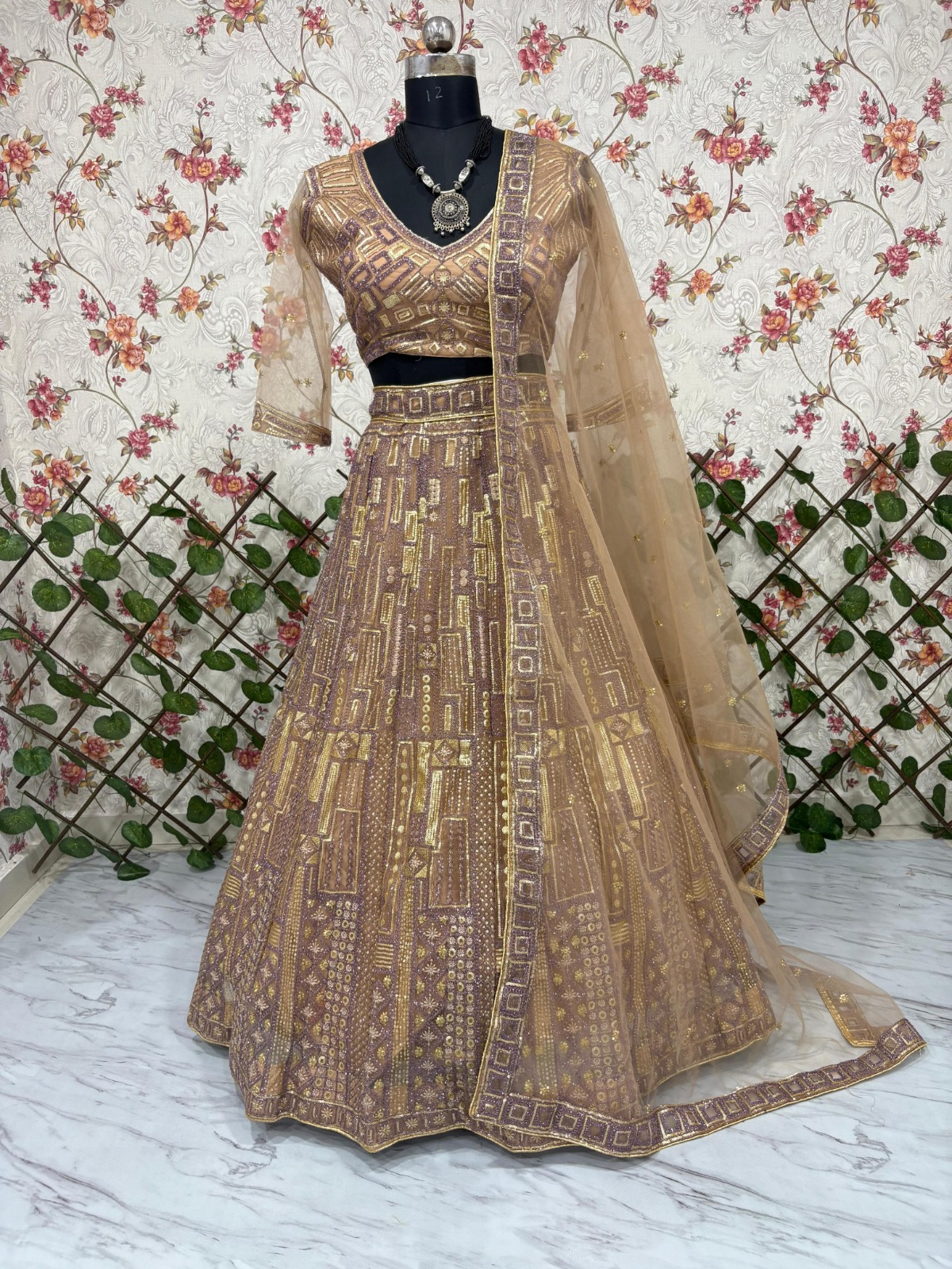 Designer Lehenga Choli Set with Dupatta Soft Butterfly Net Fabric Embroidery Work , And Heavy Sequins Work for Women – Beige Color