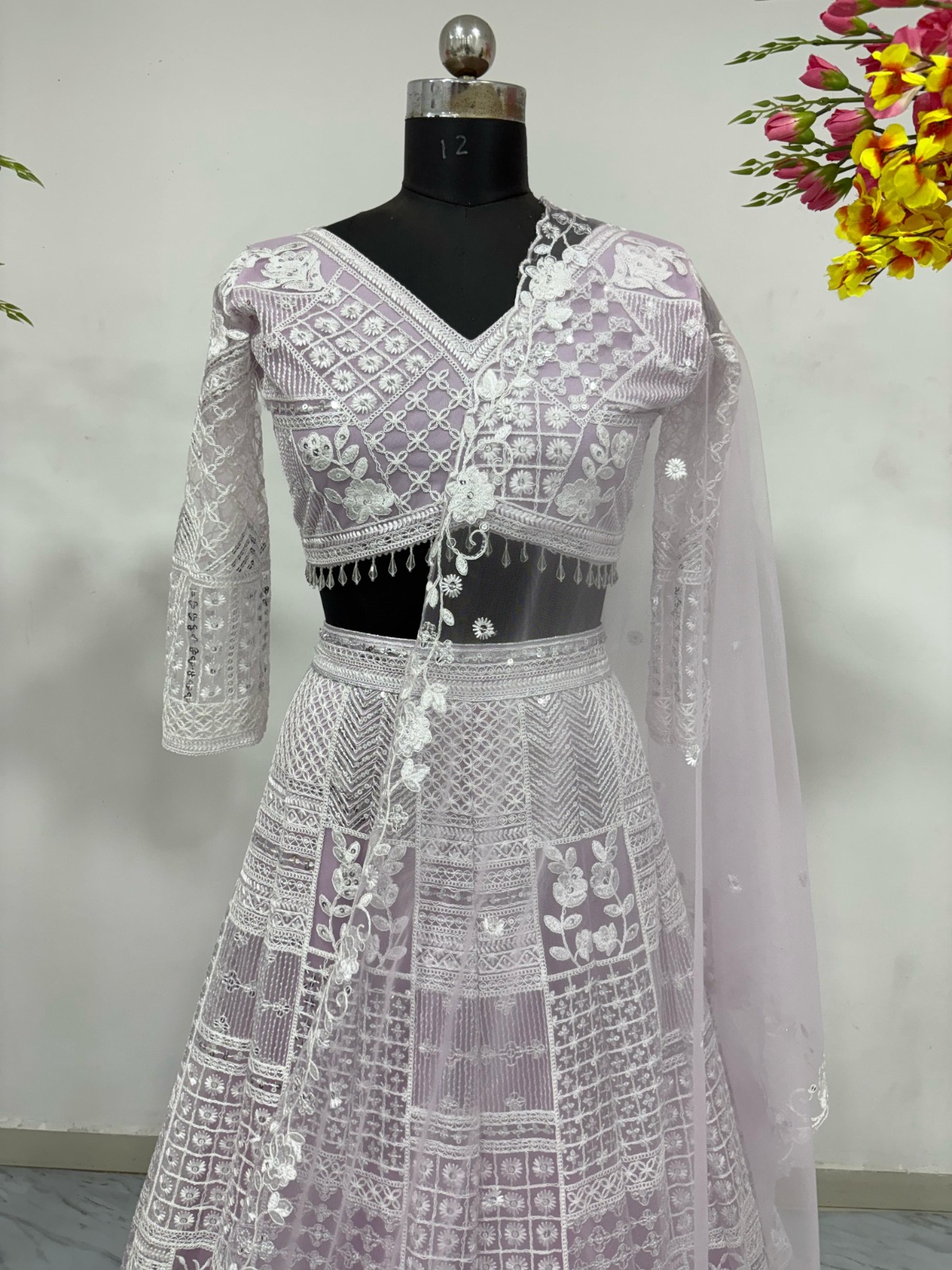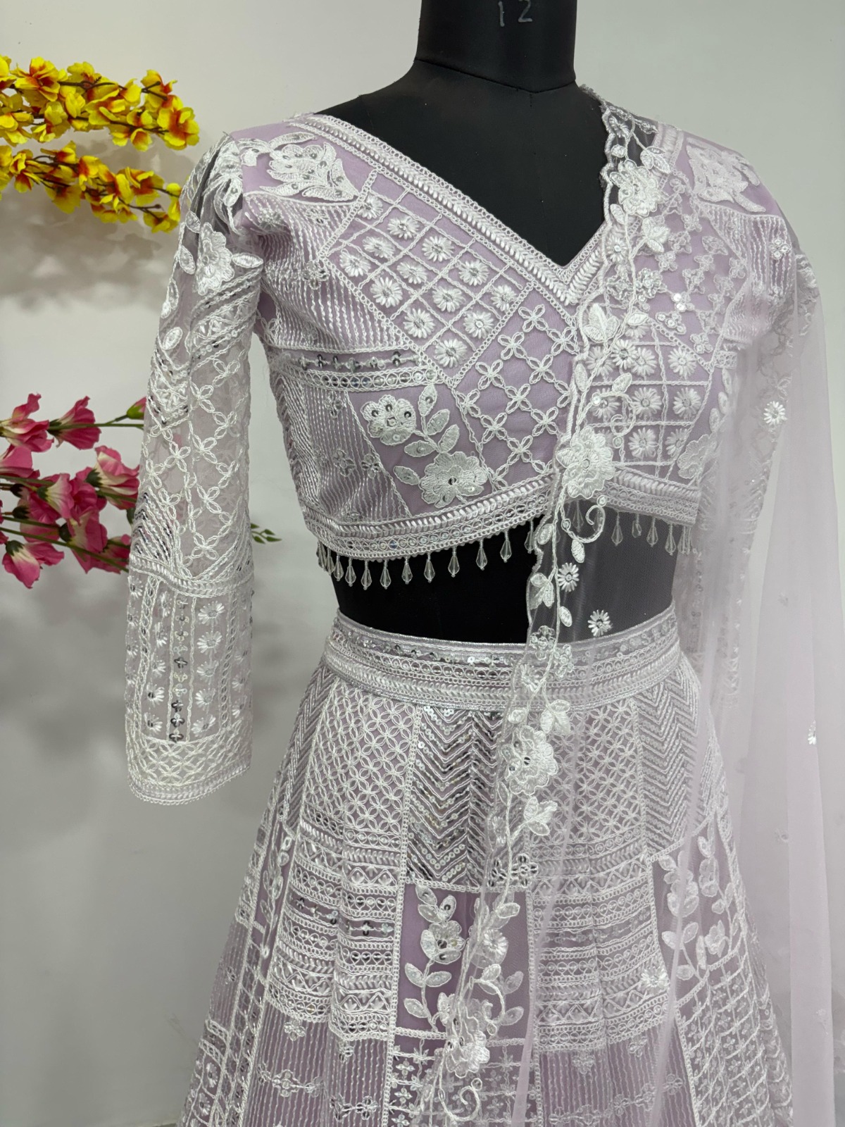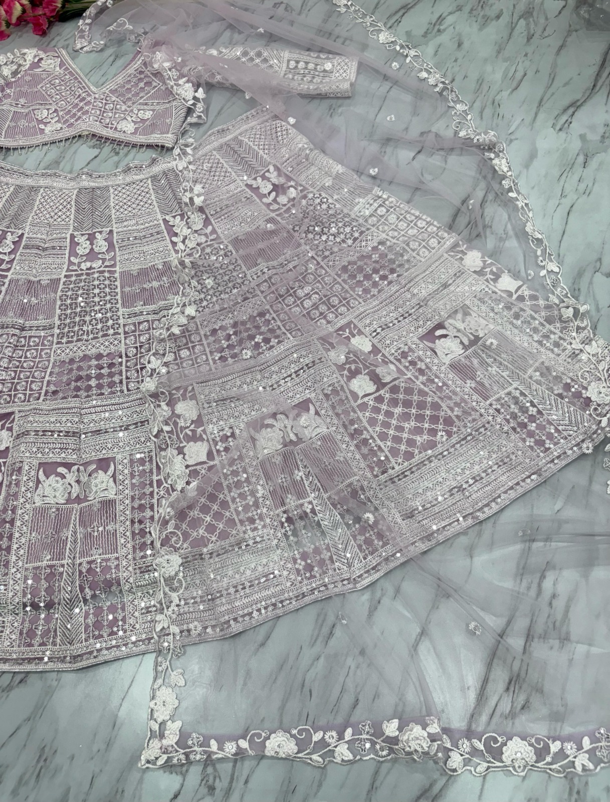 Designer Lehenga Choli Set with Dupatta Soft Butterfly Net Fabric Resham Embroidery Work , And Heavy Sequins Work for Women – Lavender Color