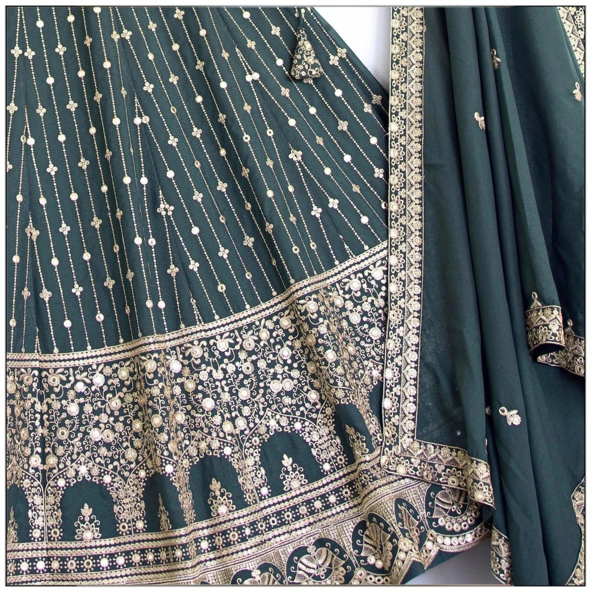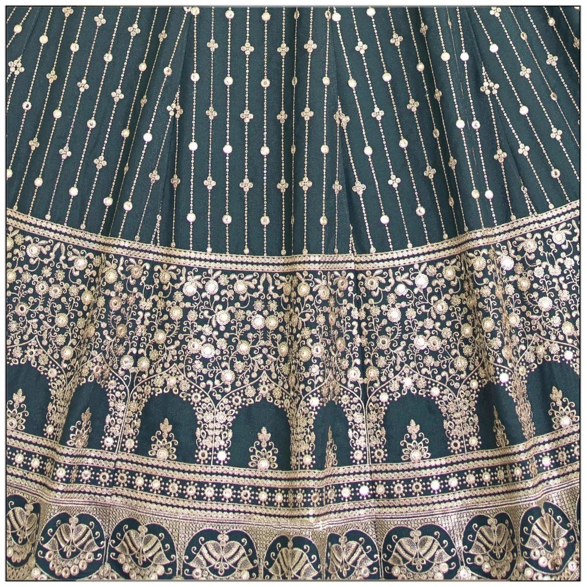 LEHENGA(BOTTOM), FABRIC:- STAR FAUX GEORGETTE, INNER:- CREPE, WORK:- 3MM5MM SEQUINS WITH JARI EMBROIDERY WORK, STITCH:- SEMI STITCHED(WITH KENKEN AND KENVAS), SIZE:- 42HEIGHT AND 42 TO 44 WAIST, FLAIR:- 3.50 METER FLAIR, CHOLI(TOP), FABRIC:- STAR FAUX GEORGETTE, INNER:- CREPE, BLOUSE SIZE:- 1 METER EMBROIDERED FABRIC, WORK:- 3MM5MM SEQUINS WITH JARI EMBROIDERY WORK, STITCH:- UN STITCHED EMBROIDERED FABRIC WITH INNER FABRICS, DUPATTA, FABRIC:- STAR FAUX GEORGETTE WITH LACE BORDER WORK, WORK:- 3MM5MM JARI EMBROIDERY WORK, SIZE:- 2.25 METER DUPATTA, STITCH:- FULL STITCHED, ADDITIONAL, WASH CARE: - DRY CLEAN ONLY, COLOR: - PRODUCT COLOR MAY SLIGHTLY VARY DUE TO PHOTOGRAPHIC LIGHTNING SOURCES OR YOUR DEVICE DISPLAY SETTINGS, THESE ARE MADE TO ORDER DESIGNER STYLES, HENCE EXPECT A SLIGHT VARIATION FROM THE IMAGE DISPLAYED.