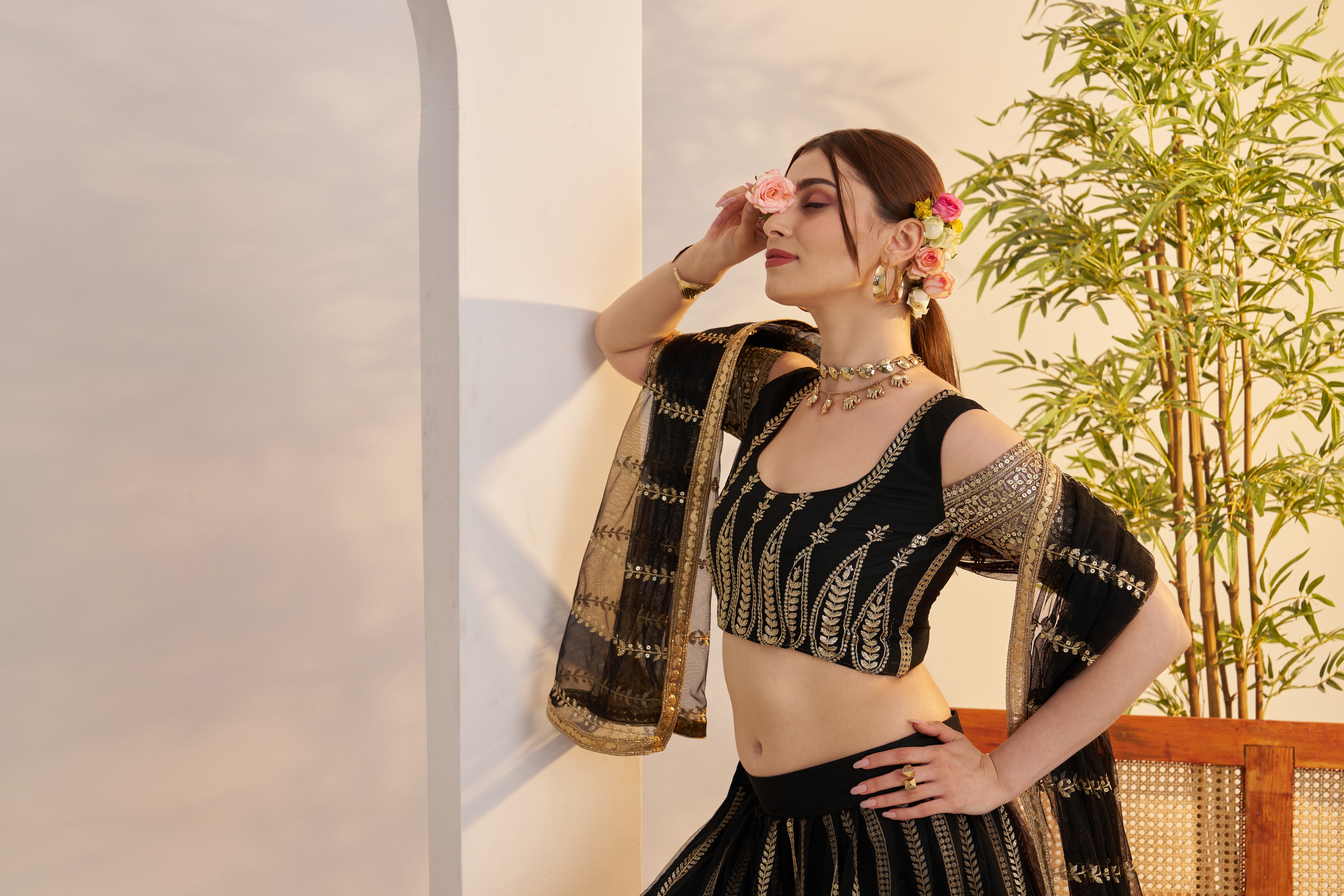 Designer Wedding Lehenga Choli Set with Dupatta for Women Black Color