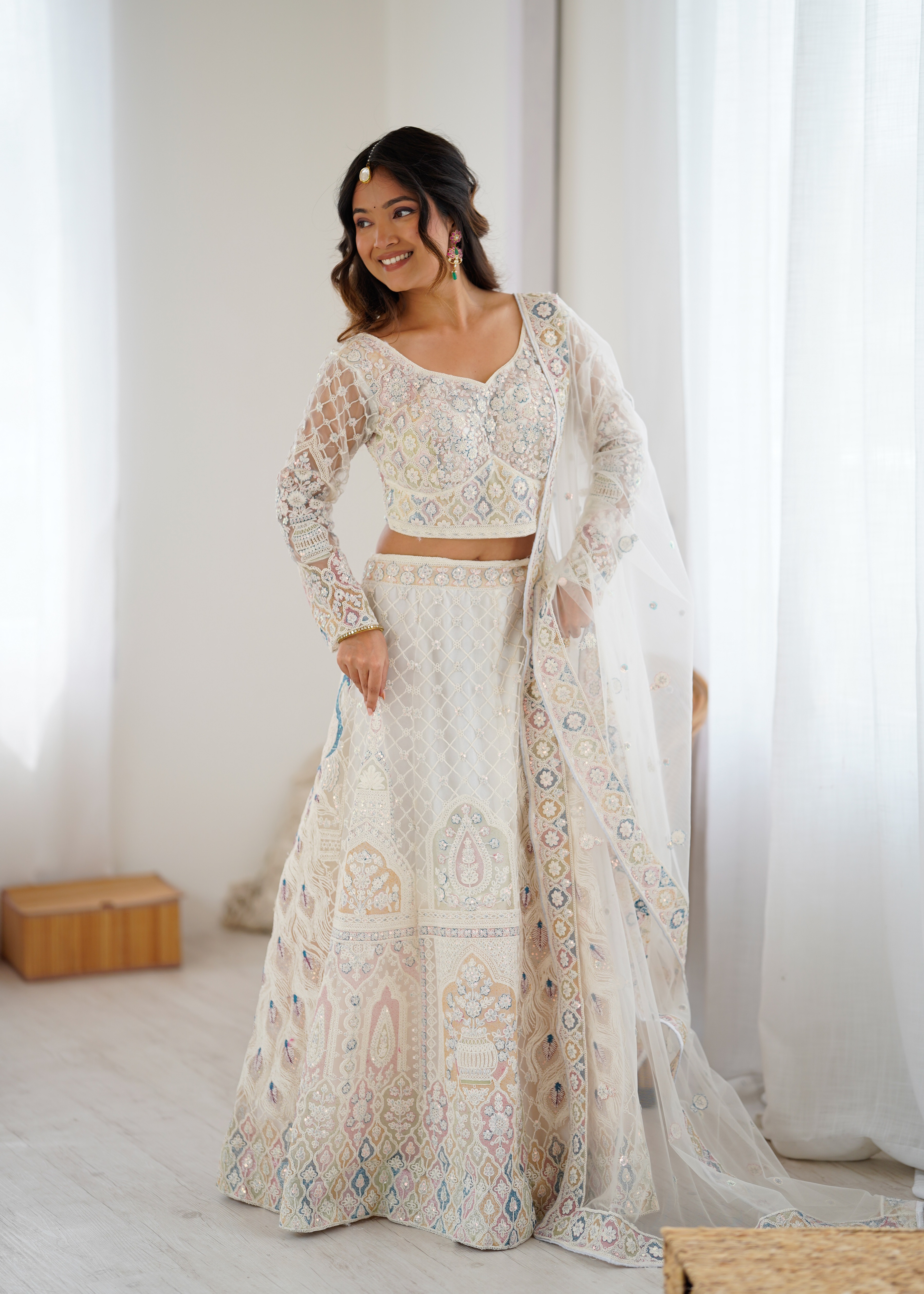 Designer Wedding Lehenga Choli Set with Dupatta for Women Offwhite Color