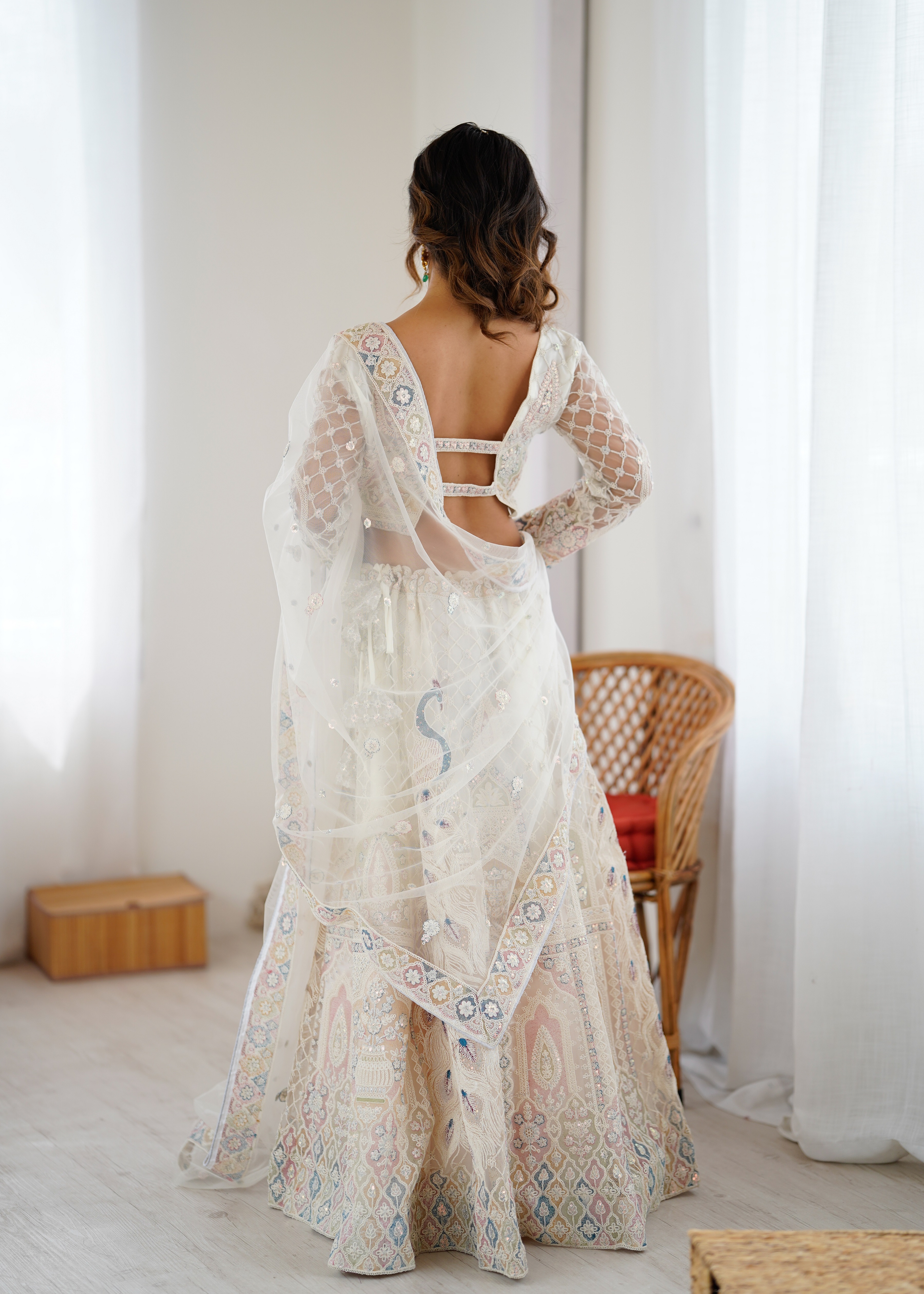 • Lehenga features a well-structured flare that creates a stunning silhouette while ensuring comfort.