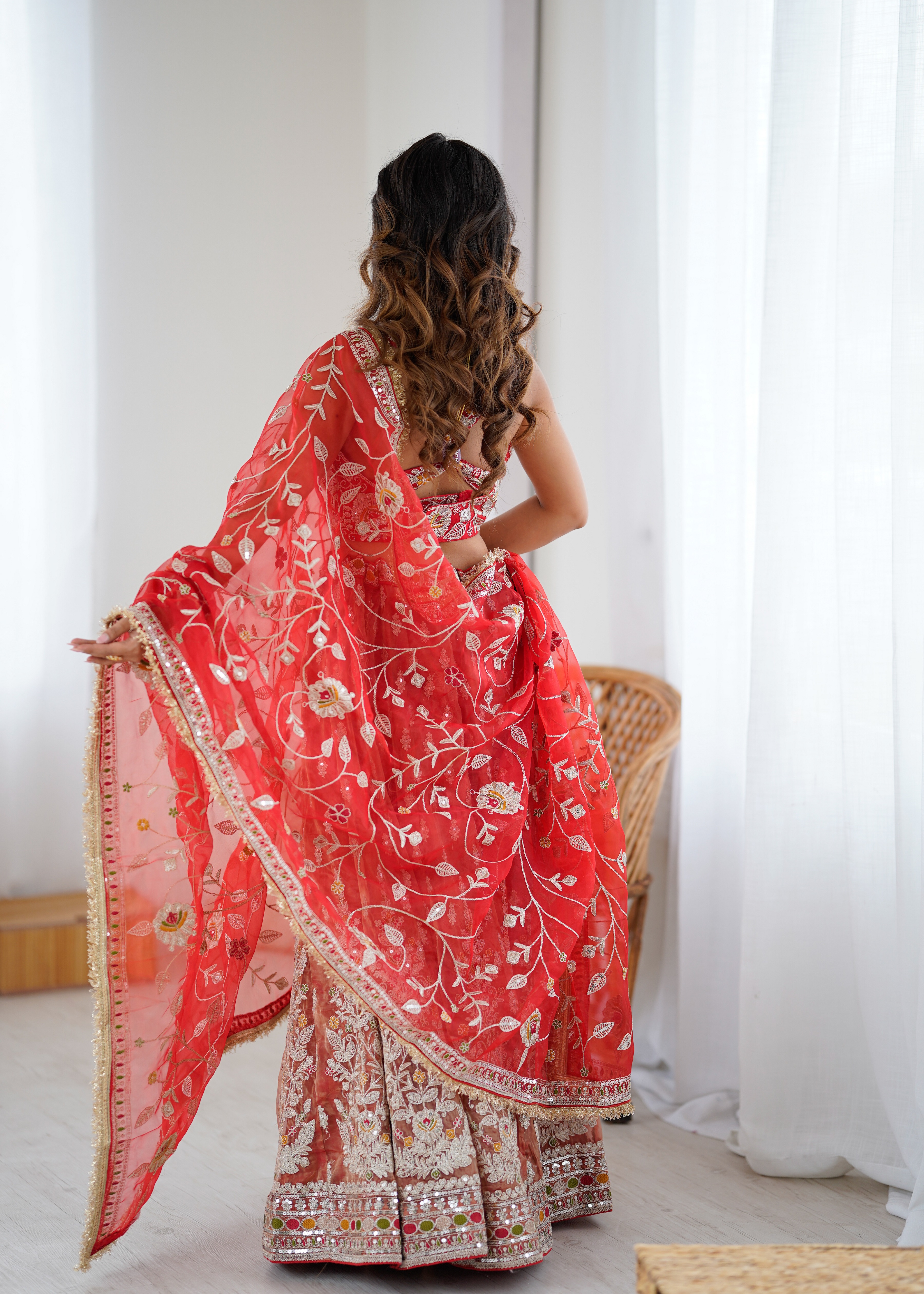 Fabric DetailsLehenga : Premium Rolex Silk Embellished With Beautiful Embroidery, Dori Work With Beautiful Heavy Sequins With Heavy Cancan And Canvas With Double Inner Covering With 3.5 Mtr Flair( Semi Stitched. )Blouse : Premium Organza Silk Embellished With Beautiful Embroidery, Dori Work With Beautiful Sequins Work Both Side Work Front And Back( Unstitched )Dupatta: Premium Organza Silk Embellished With Beautiful Embroidery, Dori Work With Beautiful Heavy Sequins Work( 2.5 MTR ).