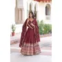 Lehenga:- (Full-Stitched) Fabric Work :- Vichitra Silk With Heavy Sequins Thread Embroidered work Length :- 42 Waist :- 42 Inner :- Cotton Flair :- 3 Mtr Closure :- Zip Attached With Dori Latkan Stitching Type :- Stitched with Canvas Can-canBlouse:- (Un-stitched) Fabrics :- Vichitra Silk Length :- 1 Mtr (Unstitched)Dupatta :- Fabrics Work :- Vichitra Silk with Sequins Thread Embroidered work with Designer Lace Border Length :- 2.2 Mtr.