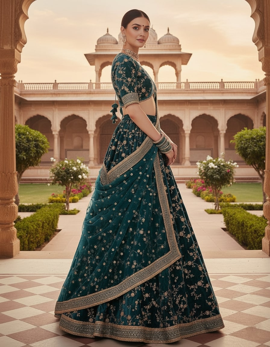 LEHENGA(BOTTOM)FABRIC:- 9000 VELVET FABRICINNER:- MICRO FABRICWORK:- 3MM SEQUINS WITH JARI AND CODDING DORI EMBROIDERY WORKSTITCH:- SEMI STITCHED WITH CANCAN AND CANVASSIZE:- 42 HEIGHT AND 42 WAIST FLAIR:- 3.00 TO 3.20 METERCHOLI(TOP)FABRIC:- 9000 VELVET FABRICSIZE:- 0.80 METER FABRICWORK:- 3MM SEQUINS WITH JARI AND CODDING DORI EMBROIDERY WORKSTITCH:- UN STITCHED FABRICEBROIDERY WORK SIZE:- FRONT HEIGHT-14 WIDTH-22, , BACK HEIGHT-14 WIDTH-22, , SLEVES HEIGHT-8 WIDTH-13.50DUPATTAFABRIC:- NETWORK:- 3MM SEQUINS WITH JARI AND CODDING DORI EMBROIDERY LACE BORDERWORKSIZE:- 2.25 METER DUPATTASTITCH:- FULL STITCHEDADDITIONALWASH CARE: - DRY CLEAN ONLYCOLOR: - PRODUCT COLOR MAY SLIGHTLY VARY DUE TO PHOTOGRAPHIC LIGHTNING SOURCES OR YOUR DEVICE DISPLAY SETTINGSTHESE ARE MADE TO ORDER DESIGNER STYLES, HENCE EXPECT A SLIGHT VARIATION FROM THE IMAGE DISPLAYEDIN THE BOX 1 PIECE LEHENGA 1 PIECE DUPATTA 1 PIECE BLOUSE FABRIC.