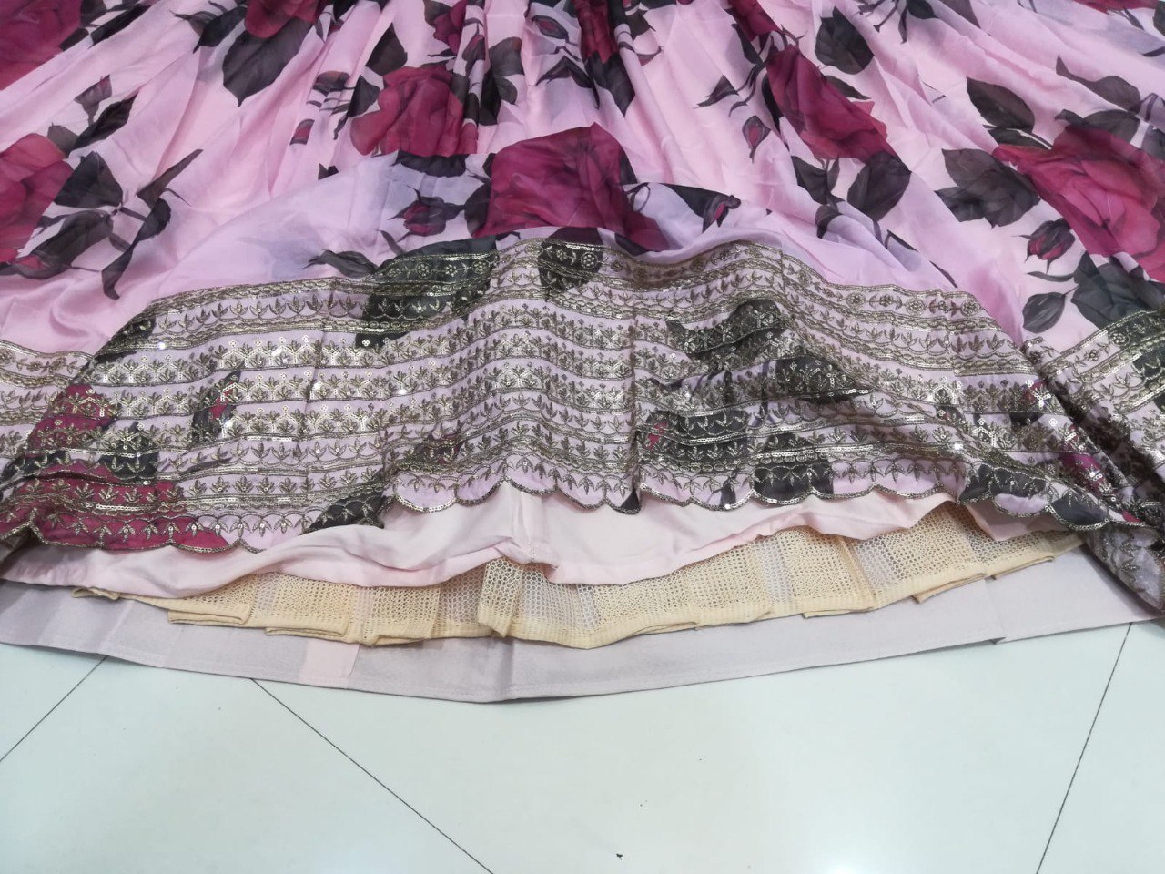 LEHENGA(BOTTOM)FABRIC: - ORGANZAINNER: - MICROWORK: - 3MM SEQUINS WITH JARI EMBROIDERY WORKSTITCH: - SEMI STITCHED (WITH KENKEN AND KENVAS)SIZE: - 42HEIGHT AND 42 TO 44 WAISTFLAIR: - 3.40 TO 3.50 METER FLAIRCOLOR: - PINK MULTI PRINTED COLOR CHOLI(TOP)FABRIC: - ORGANZABLOUSE SIZE: - 1 METER ALLOVER EMBROIDERED FABRICWORK: - 3MM SEQUINS WITH JARI EMBROIDERY WORK STITCH: - UN STITCHED FABRICCOLOR: - PINK MULTI PRINTED COLOREBROIDERY WORK SIZE: - 1 METER ALLOVER EMBOIDERY WORK DUPATTAFABRIC: - ORGANZAWORK: - 3MM SEQUINS WITH JARI EMBROIDERY WORK SIZE: - 2.25 METER DUPATTASTITCH: - FULL STITCHEDCOLOR: - PINK MULTI PRINTED COLORADDITIONALWASH CARE: - DRY CLEAN ONLYCOLOR: - PRODUCT COLOR MAY SLIGHTLY VARY DUE TO PHOTOGRAPHIC LIGHTNING SOURCES OR YOUR DEVICE DISPLAY SETTINGSTHESE ARE MADE TO ORDER DESIGNER STYLES, HENCE EXPECT A SLIGHT VARIATION FROM THE IMAGE DISPLAYEDIN THE BOX 1 PIECE LEHENGA 1 PIECE DUPATTA 1 PIECE BLOUSE FABRIC (1 SET OF HAND MADE TASSELS)ALTERNATIVEHANDMADE TASSELS MAY DIFFER FROM THE PHOTOS AND VIDEOS. TASSELS WILL BE AVAILABLE AS LONG AS THE CURRENT STOCK LASTS. ALTERNATIVELY, NEW STOCK MAY TAKE SOME TIME TO ARRIVE. WE ARE NOT STRICTLY BOUND TO PROVIDE TASSELS.