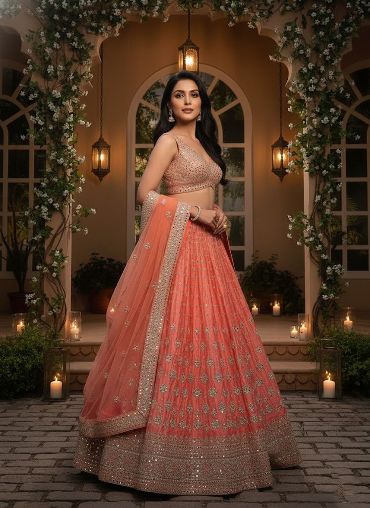 LEHENGA(BOTTOM)FABRIC: - DEVSENA SILKINNER: - MICRO FABRICWORK: - 3MM SEQUINS WITH ZARI EMBROIDERY WORKSTITCH: - SEMI STITCHED WITH CANCAN AND CANVASSIZE: - 42 HEIGHT AND 42 WAISTFLAIR: - 3.30 METERSCHOLI(TOP):-FABRIC: - DEVSENA SILKWORK: - 3MM SEQUINS WITH ZARI EMBROIDERY WORKSTITCH: - UN STITCHED FABRICDUPATTA: -FABRIC: - NETWORK: - 3MM SEQUINS WITH ZARI EMBROIDERY WORK SIZE: - 2.25 METER DUPATTASTITCH: - FULL STITCHEDADDITIONALWASH CARE: - DRY CLEAN ONLYCOLOR: - PRODUCT COLOR MAY SLIGHTLY VARY DUE TO PHOTOGRAPHIC LIGHTNING SOURCES OR YOUR DEVICE DISPLAY SETTINGSTHESE ARE MADE TO ORDER DESIGNER STYLES, HENCE EXPECT A SLIGHT VARIATION FROM THE IMAGE DISPLAYEDIN THE BOX 1 PIECE LEHENGA 1 PIECE DUPATTA 1 PIECE BLOUSE FABRIC.