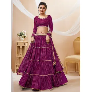 Womens Purple Georgette Lehariya...