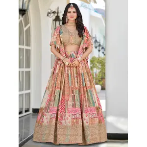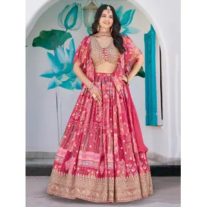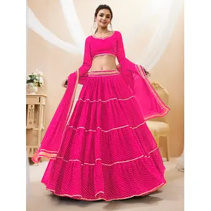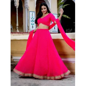 Womens Pink Georgette Lehariya...