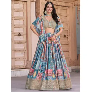 Womens Blue Georgette Lehariya...