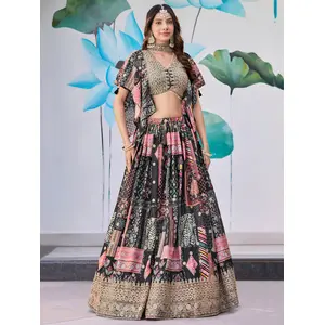 Womens Black Georgette Lehariya...