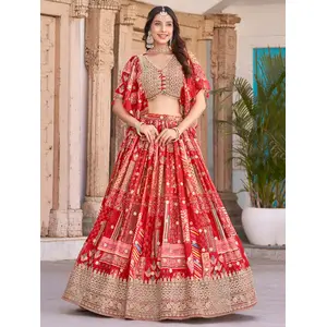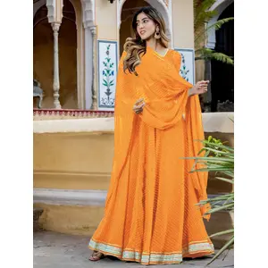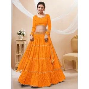 Womens Orange Georgette Lehariya...